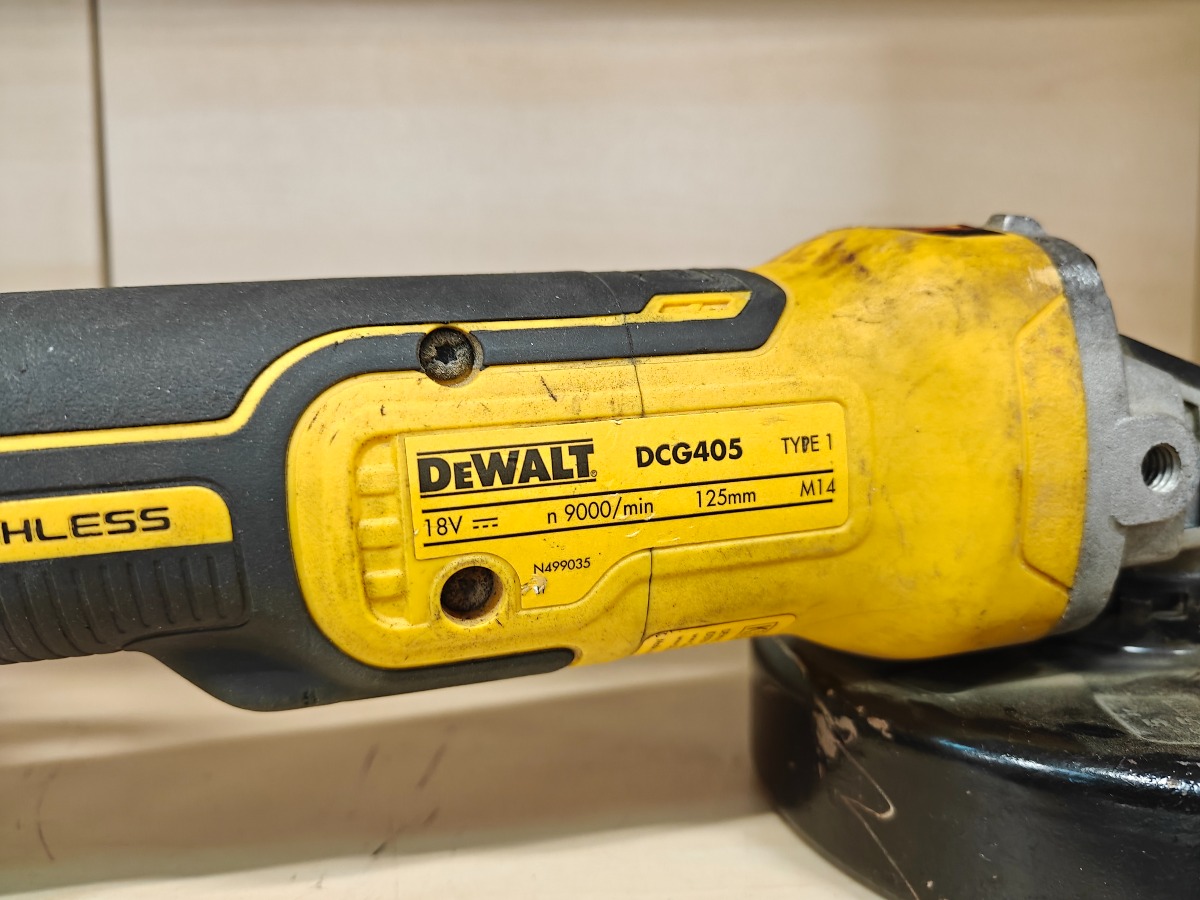 Dewalt DSG405 Aku. vinkelsliber med 9 Ah batteri. Få brugsspor. Vi garanterer ikke for funktionaliteten.