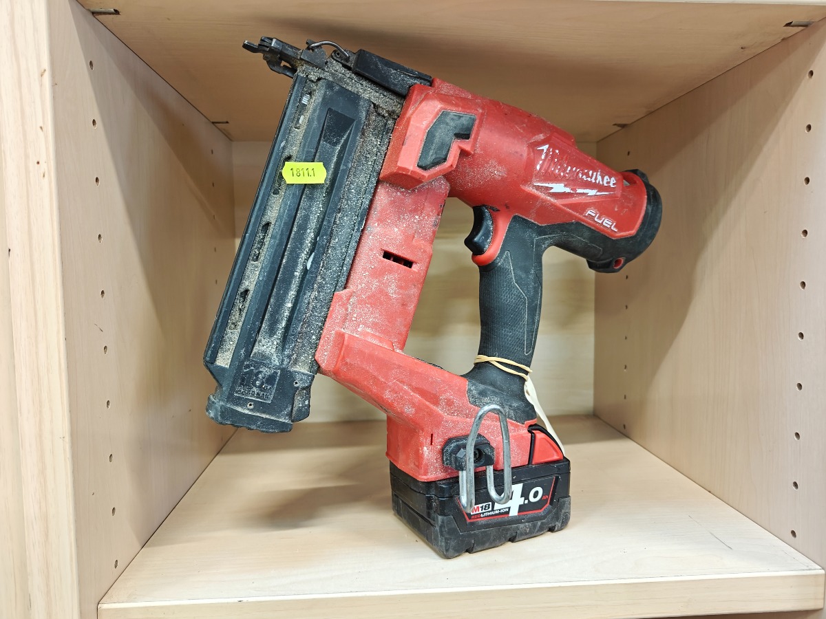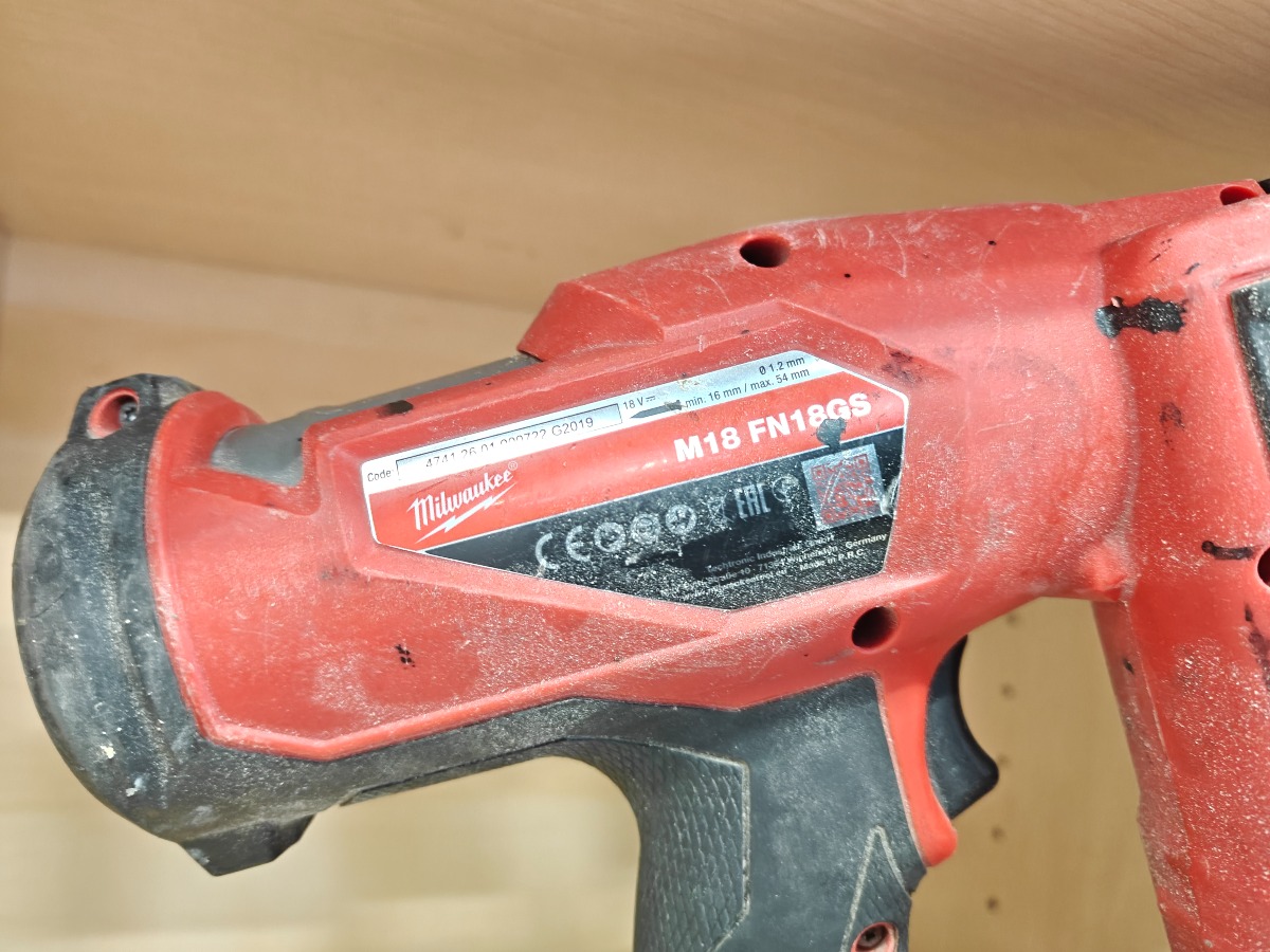Milwaukee Fuel M18 FN18GS Aku sømpistol med 4 Ah batteri. Med brugsspor. Vi garanterer ikke for funktionaliteten.