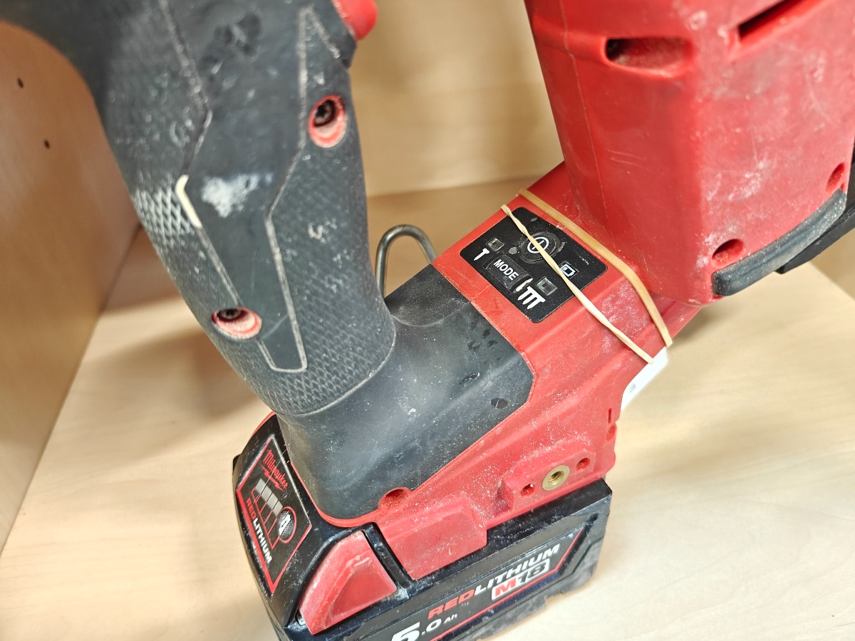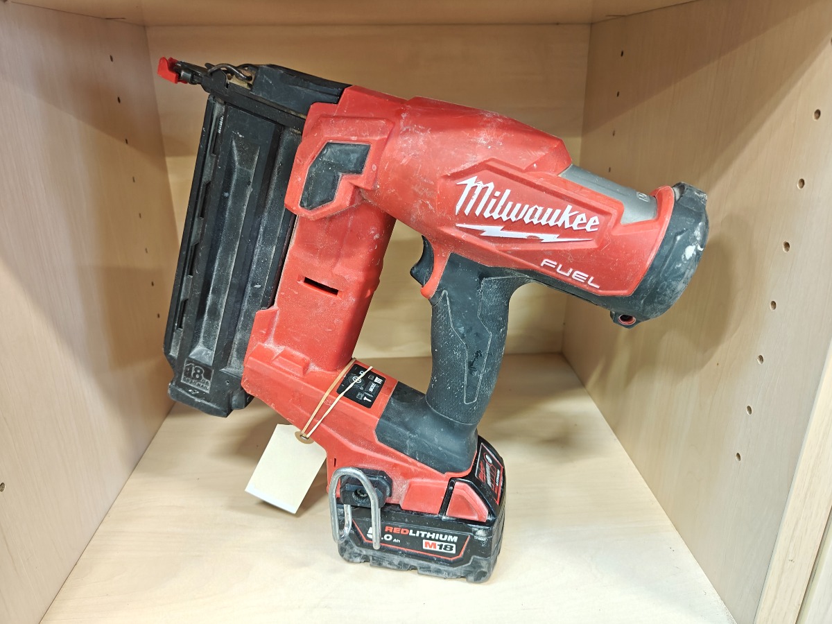 Milwaukee Fuel M18 FN18GS Aku sømpistol med 5Ah batteri. Med brugsspor. Vi garanterer ikke for funktionaliteten.