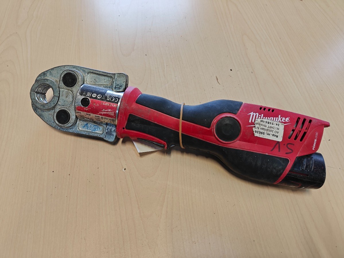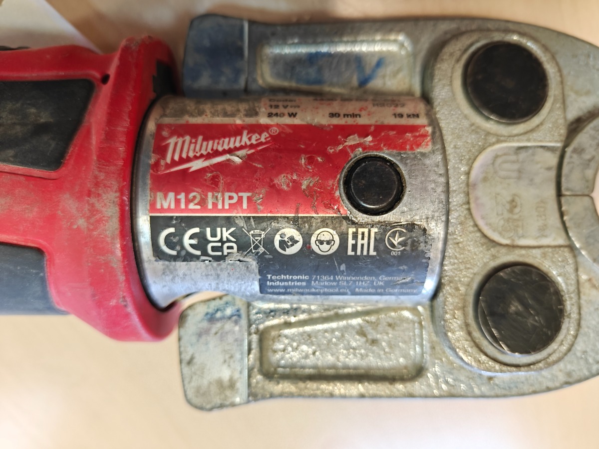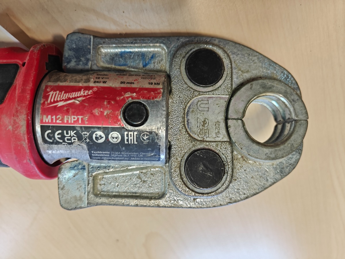 Milwaukee M12 HPT hydraulisk press værktøj Aku. med batteri. Fremstår med brugsspor og vi garanterer ikke for funktionaliteten.