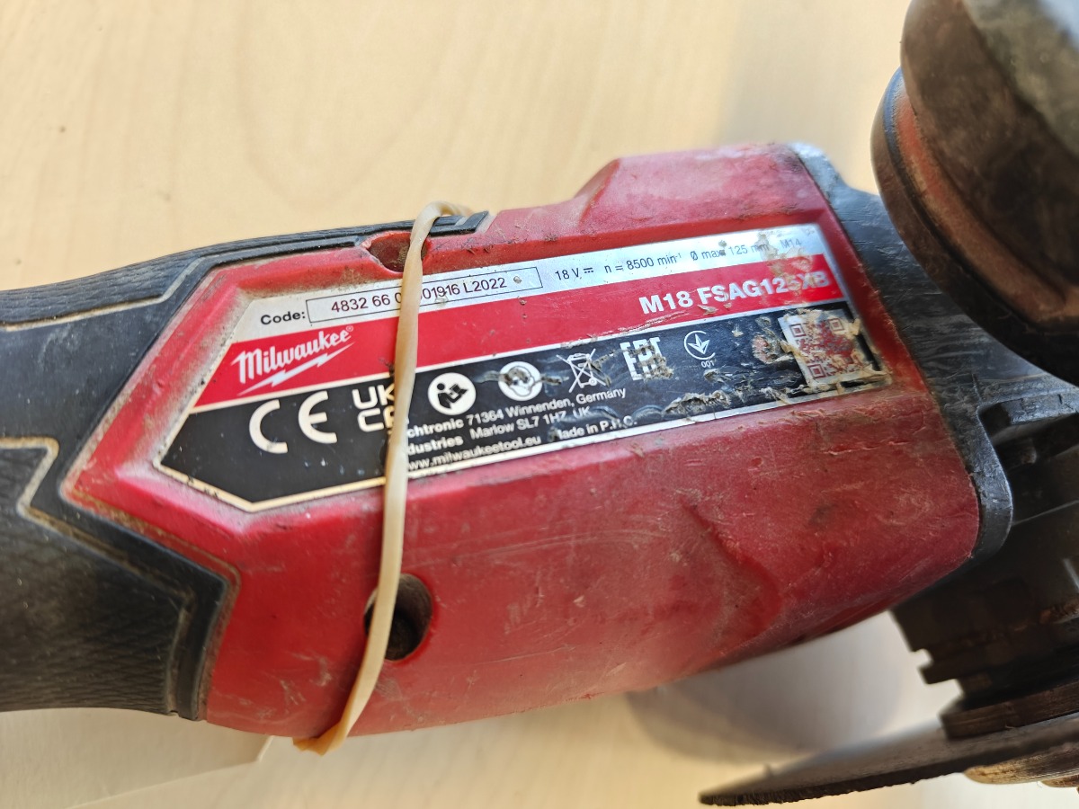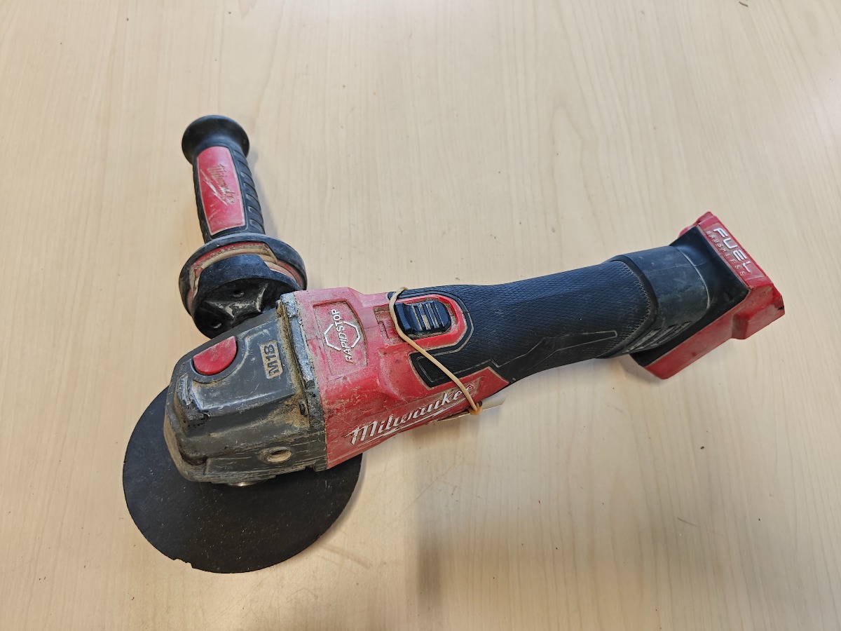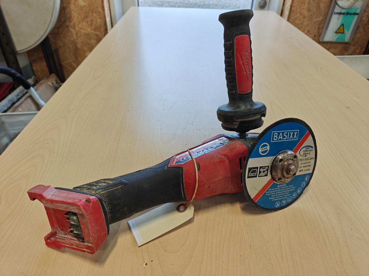 Milwaukee M18 FSAG125XB Aku vinkelsliber uden batteri. Mange brugsspor. Vi garanterer ikke for funktionaliteten.