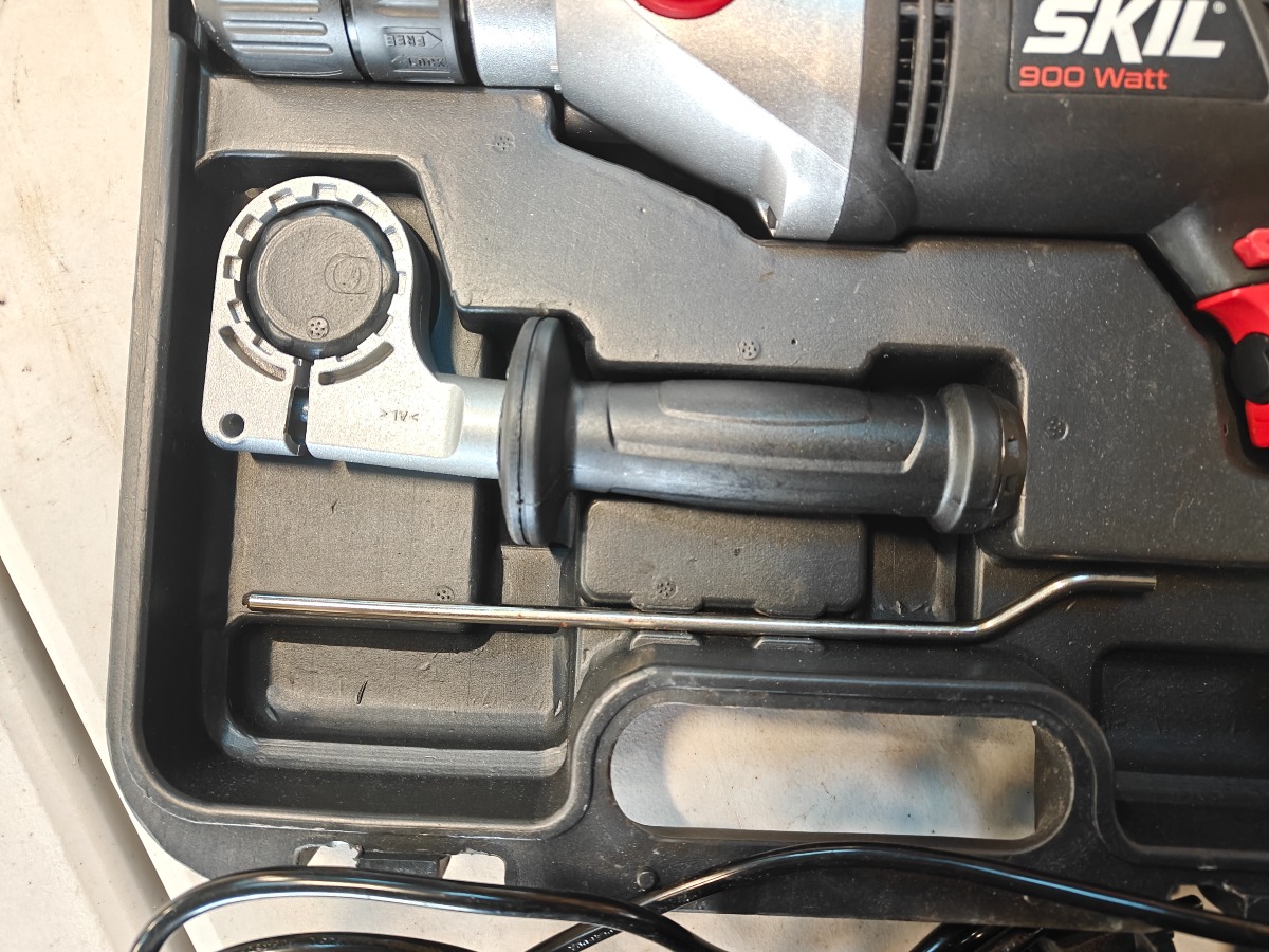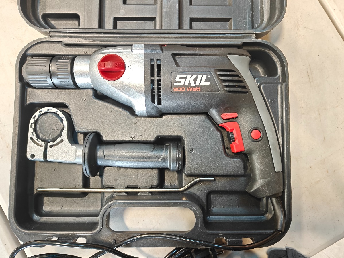 SKIL 900W slagboremaskine i original kuffert. Minimale brugsspor. Vi garanterer ikke for funktionaliteten.