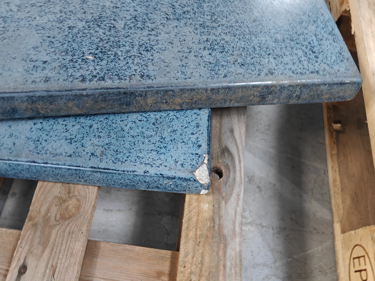 2 Franske cafébordplader. SM France Stratifié Moulé. Mål: 68.5 x 68.5 cm. Brugte med brugsspor.