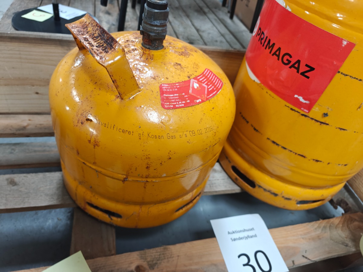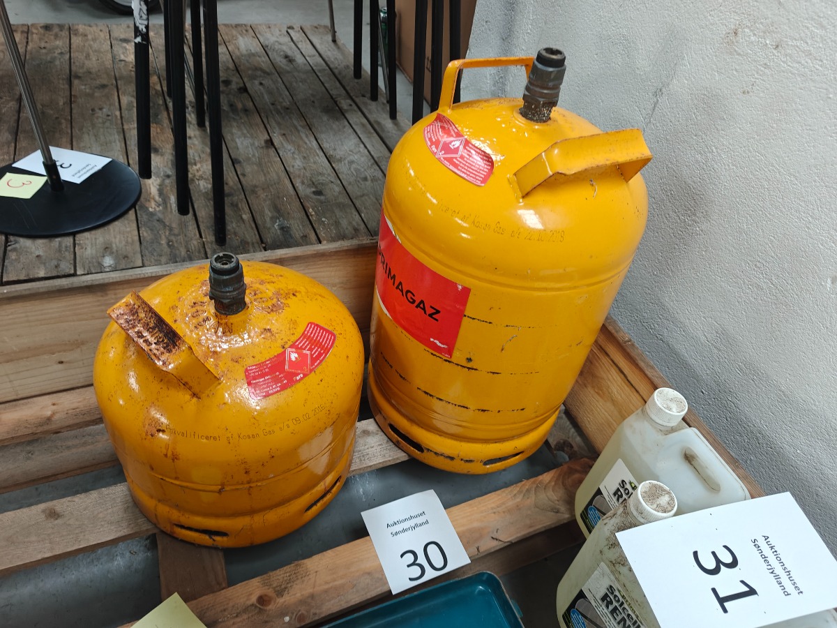 2 Gasflasker: 1 stk 11 kg og 1 stk 5 kg. Uden indhold.