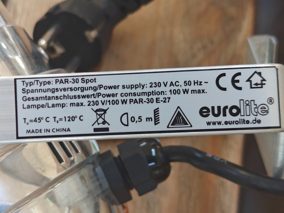 2 Spots. I teater-look. Mrk EuroLite. Type: PAR-30 Spot. 230 V/100W