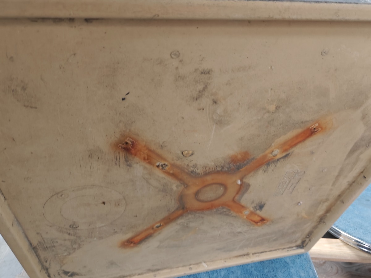 Fransk cafébordplade. SM France Stratifié Moulé. Mål: 68.5 x 68.5 cm. Brugt.