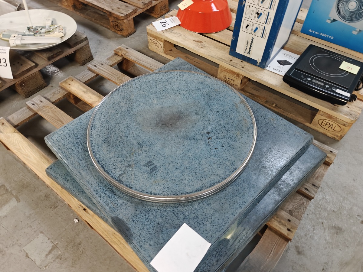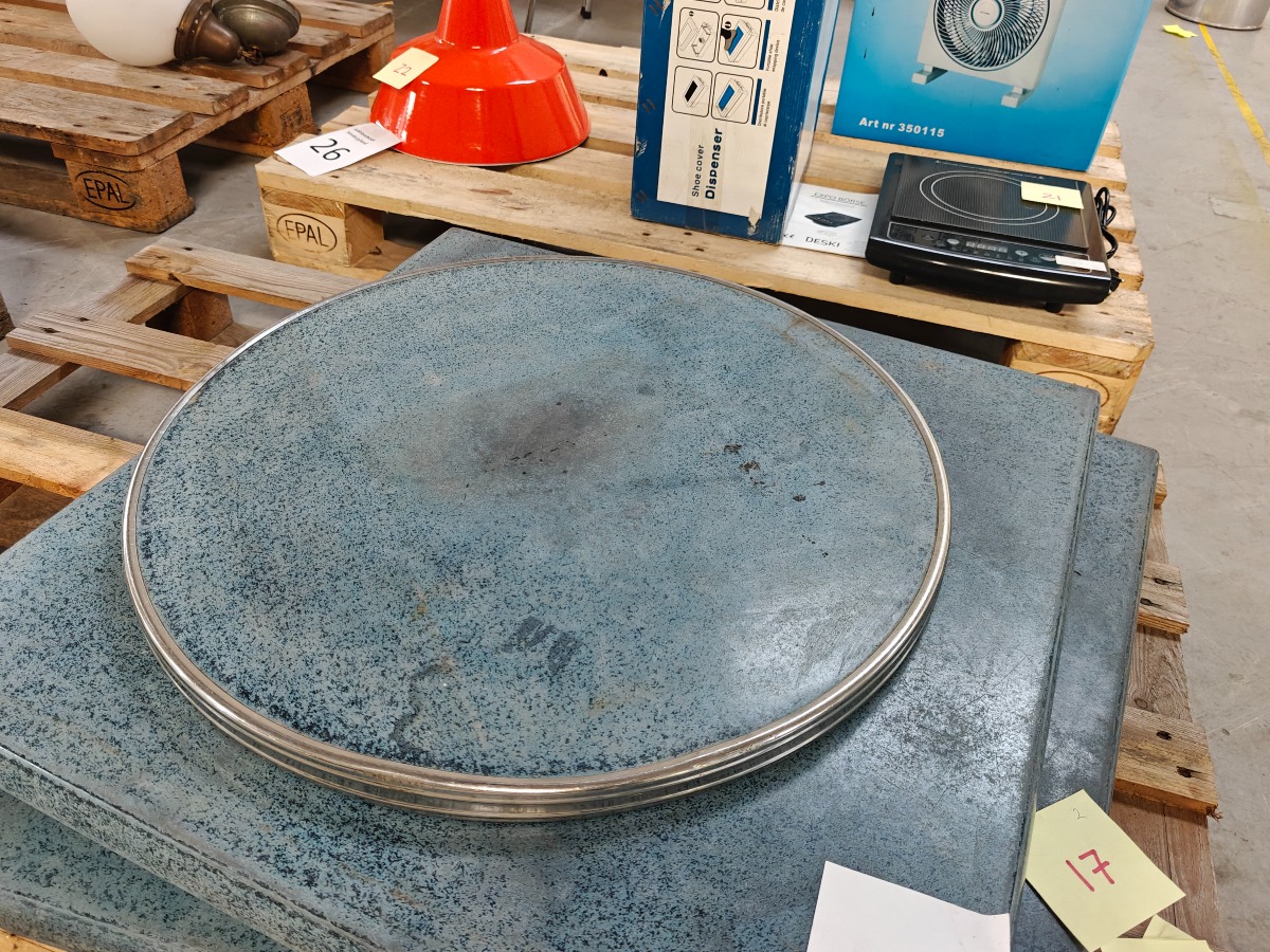 Fransk cafébordplade. SM France Stratifié Moulé. Rund m/alu skinne. Mål: Ø60 cm