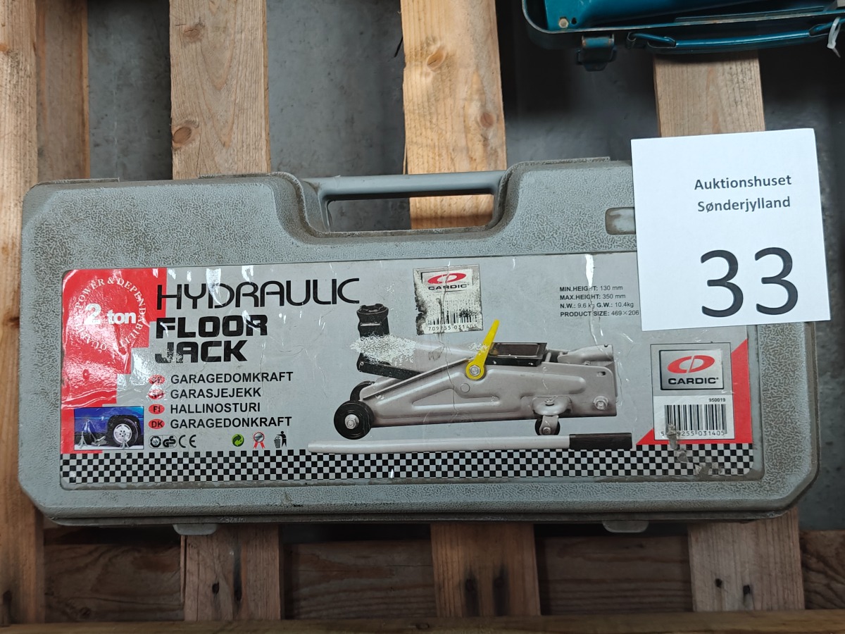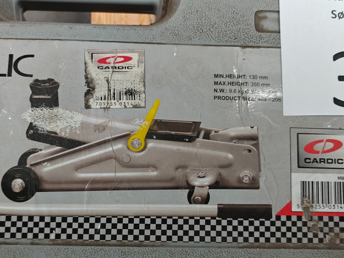 Hydraulisk donkraft i kuffert. Mrk Cardic. 2 Tons. Max højde: 350 mm