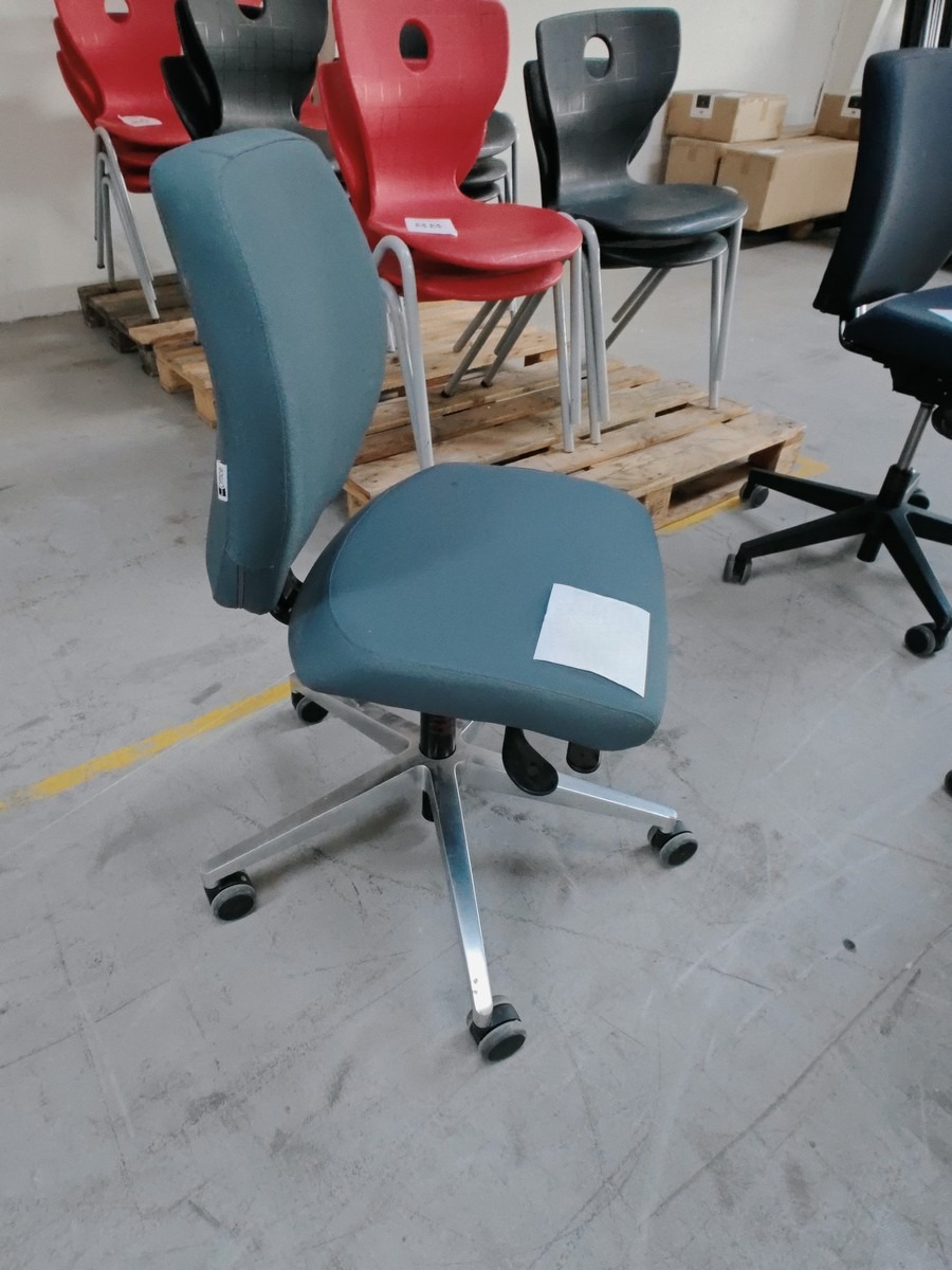 Kontorstol. Mrk ScanOffice. Grøn polstret sæde og ryg. Brugt.