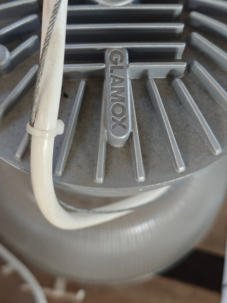 Pendel i industrielt design. Mrk: Glamox. Model: RTK106.