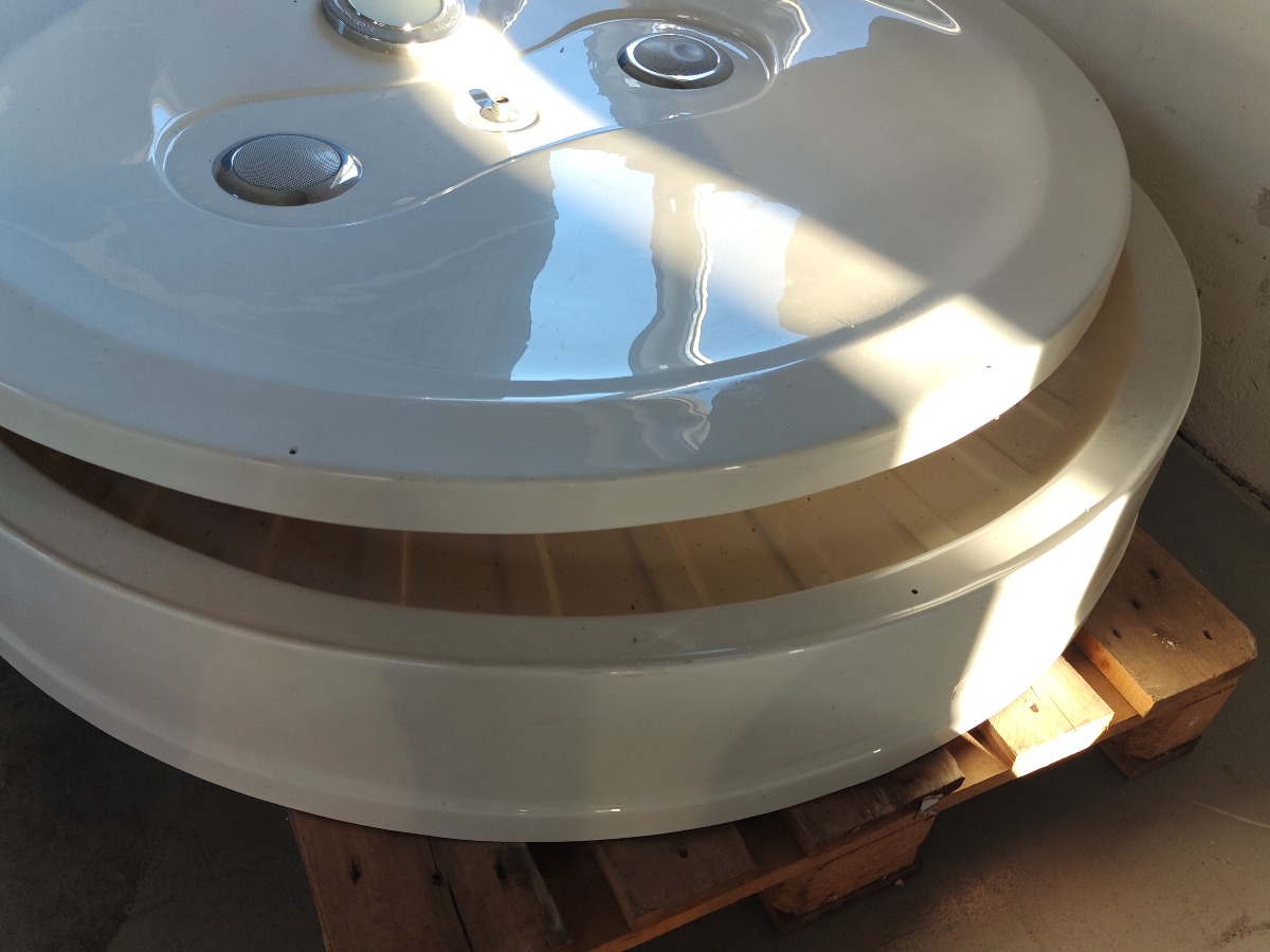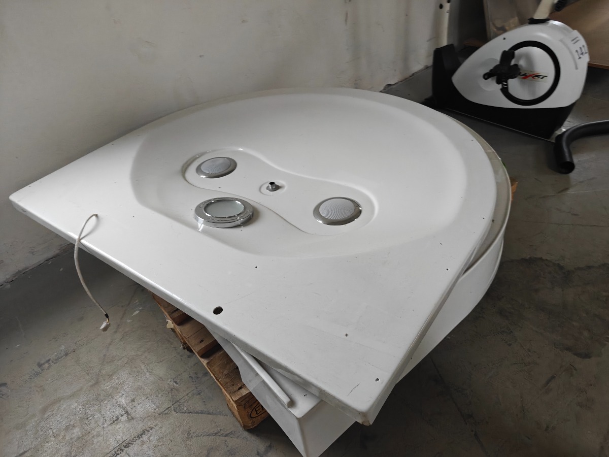 Top- og bundstykke til brusekabine. Mål: B: 122 cm. D: 110 cm. Brugt. Palle medfølger ikke.