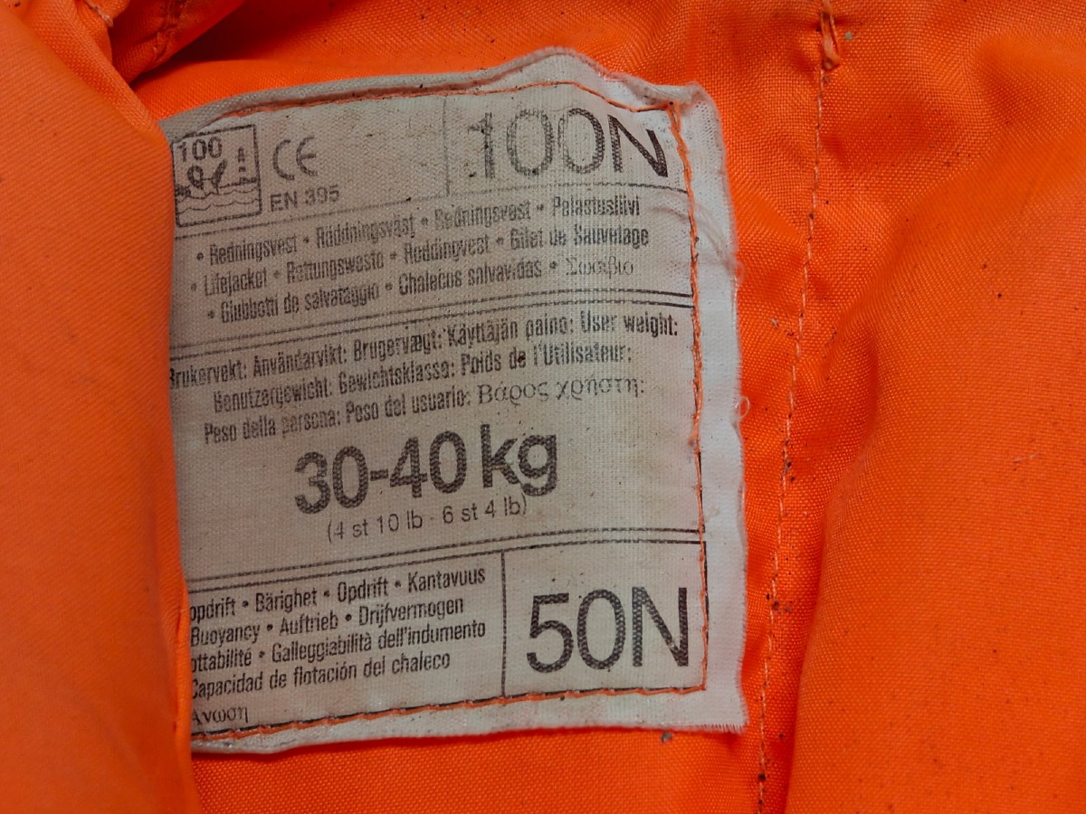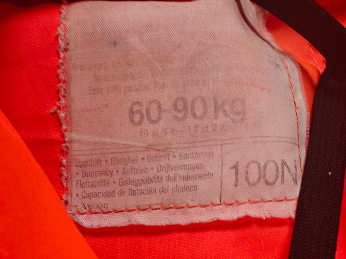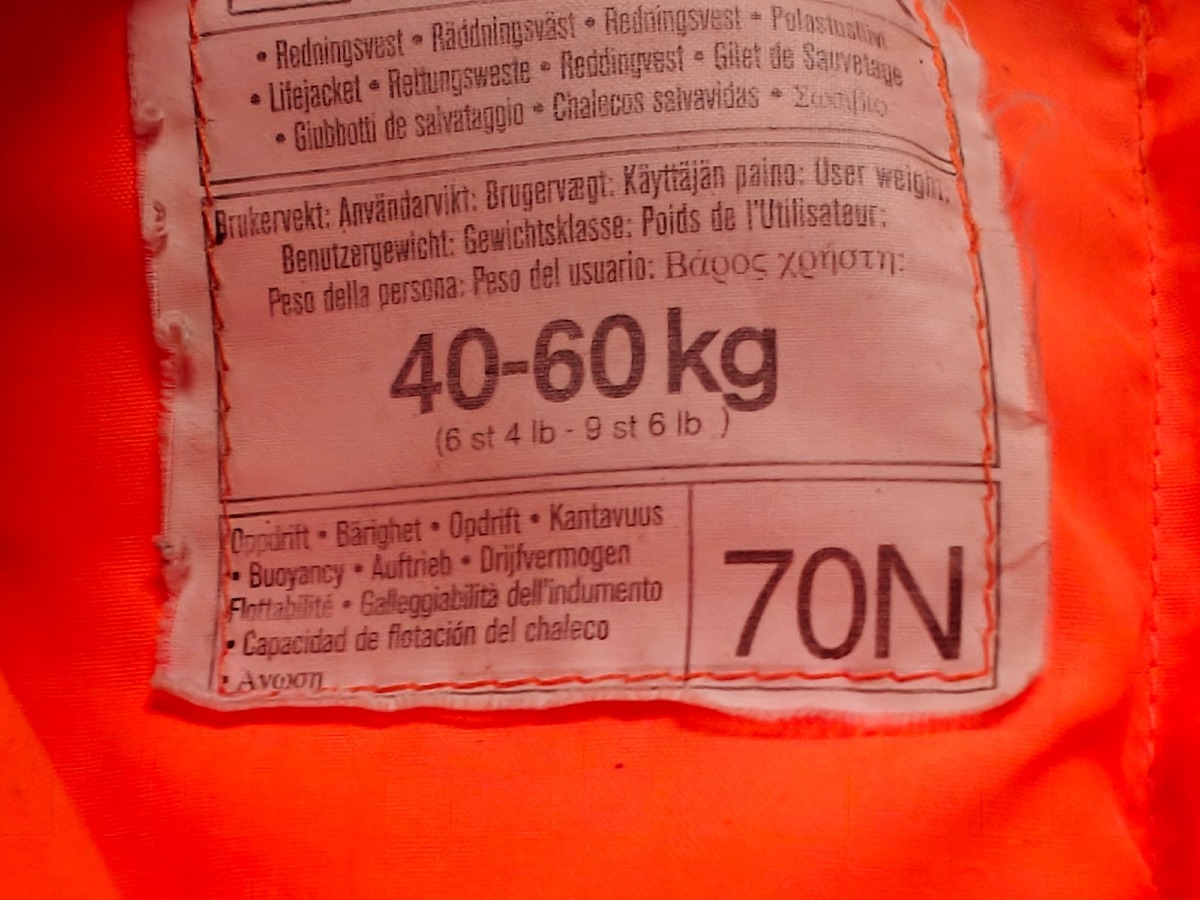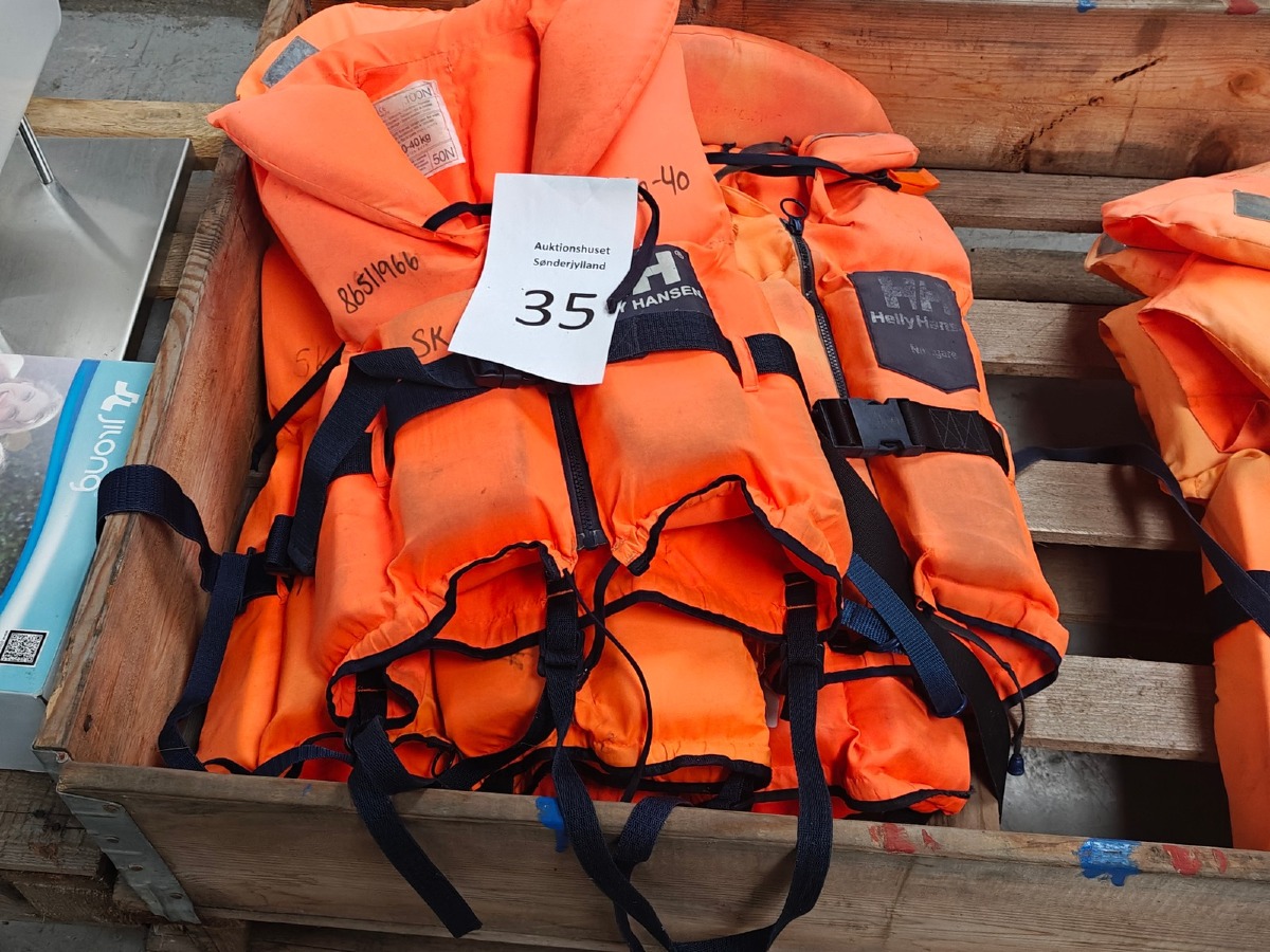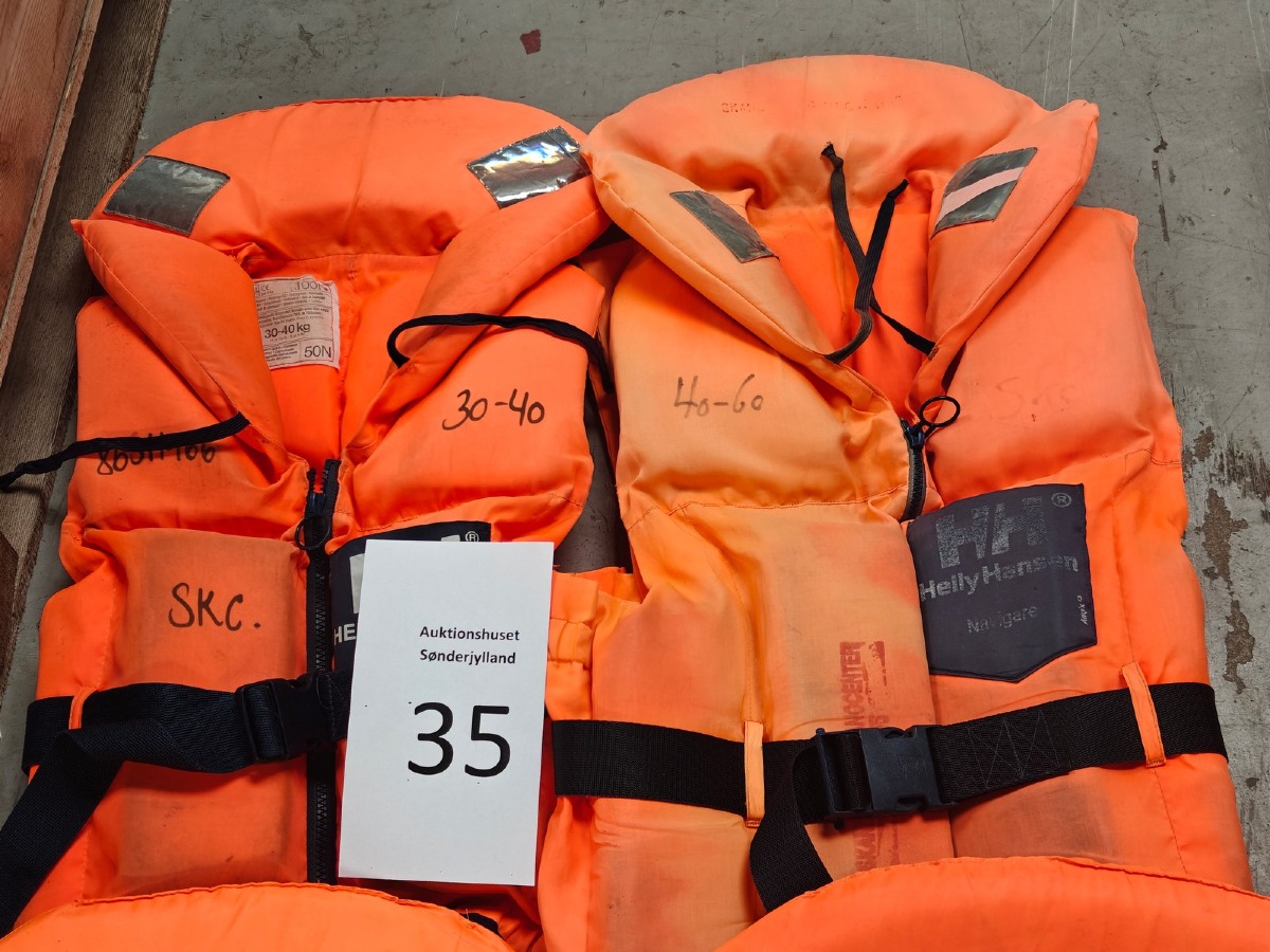 4 Redningsveste. Mrk: Helly Hansen. 1 stk: 30-40 kg. 2 stk: 40-60 kg. 1 stk: 60-90 kg. Brugte. MOMSFRI