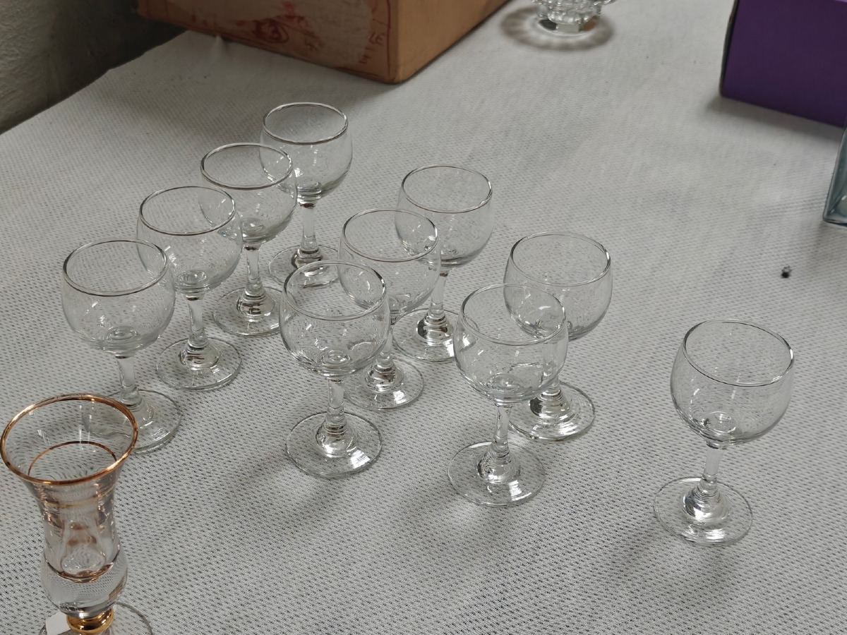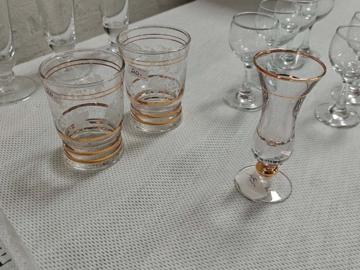 Ass. glas: Nogle med guldkant, portvinsglas samt lommelærke. MOMSFRI.