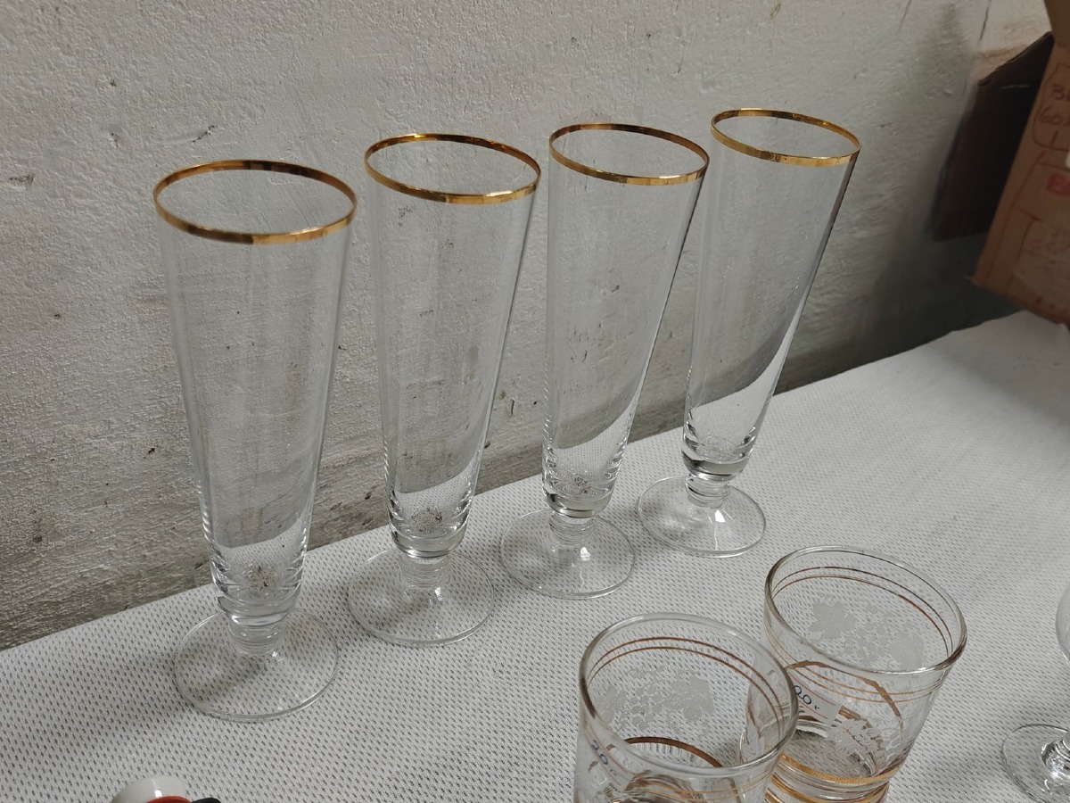 Ass. glas: Nogle med guldkant, portvinsglas samt lommelærke.