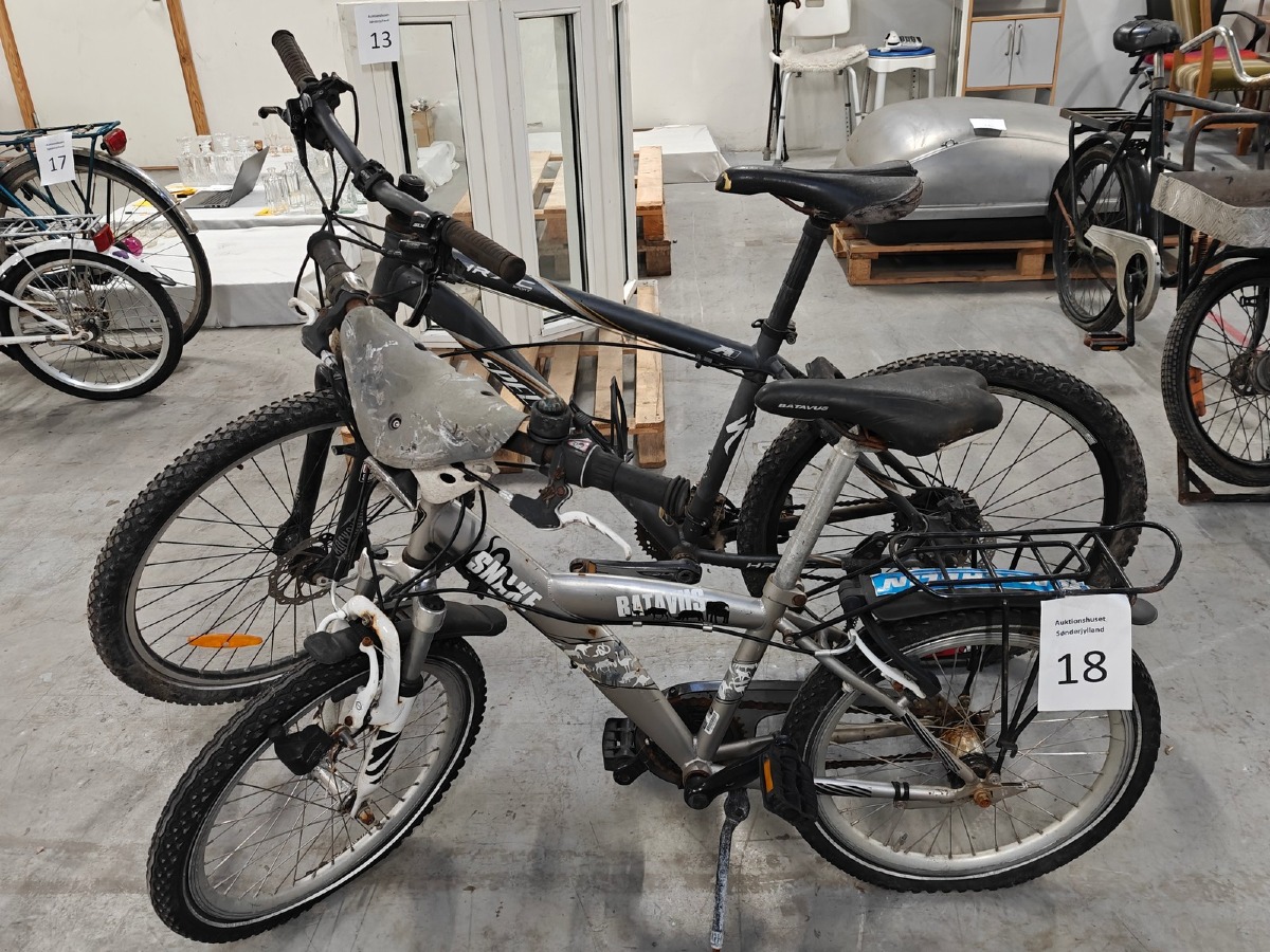 Herrecykel og drengecykel. Herrecykel af mærket  HR XC Sport. Model: Specialized. Drengecykel af mærket Batavus. Model: Snake. Brugte med brugsspor.
