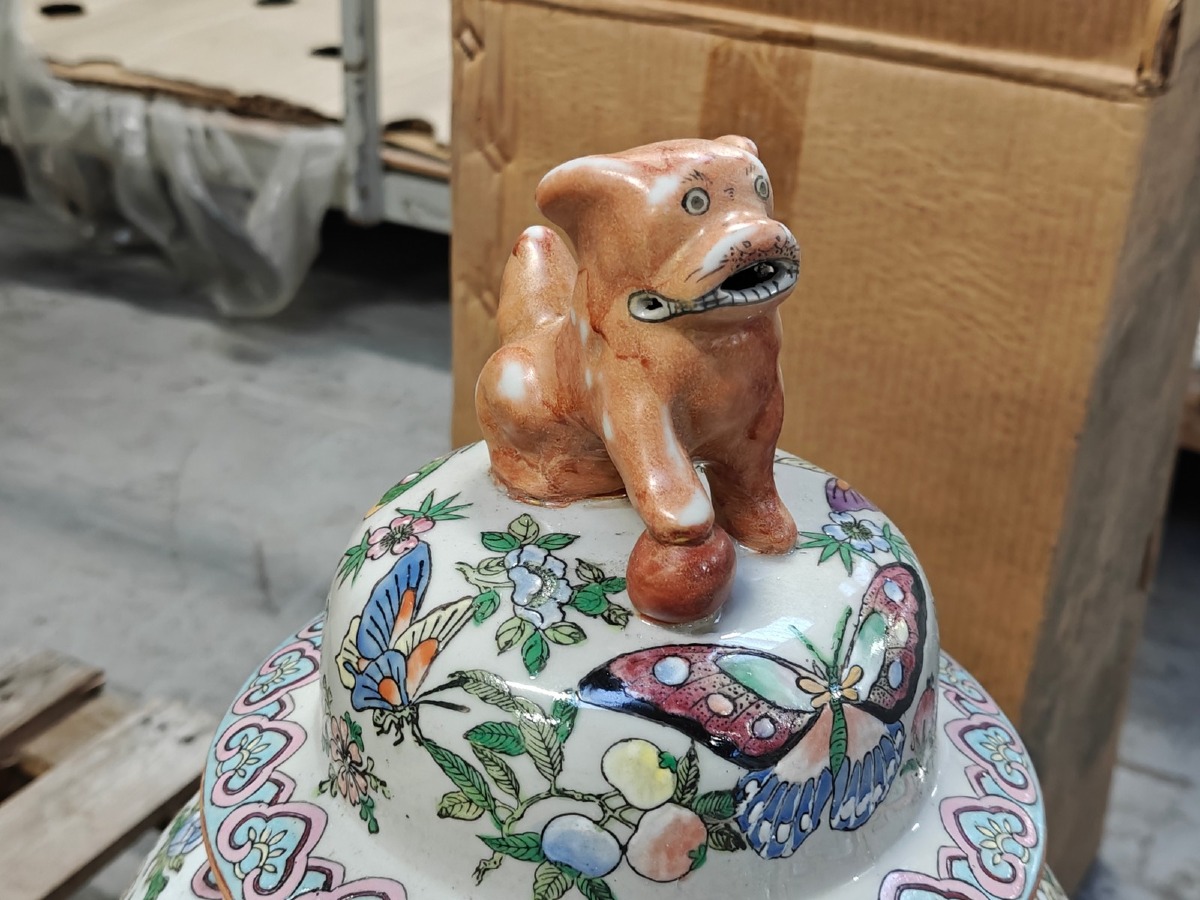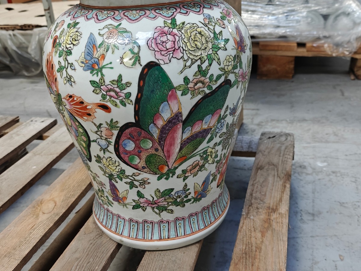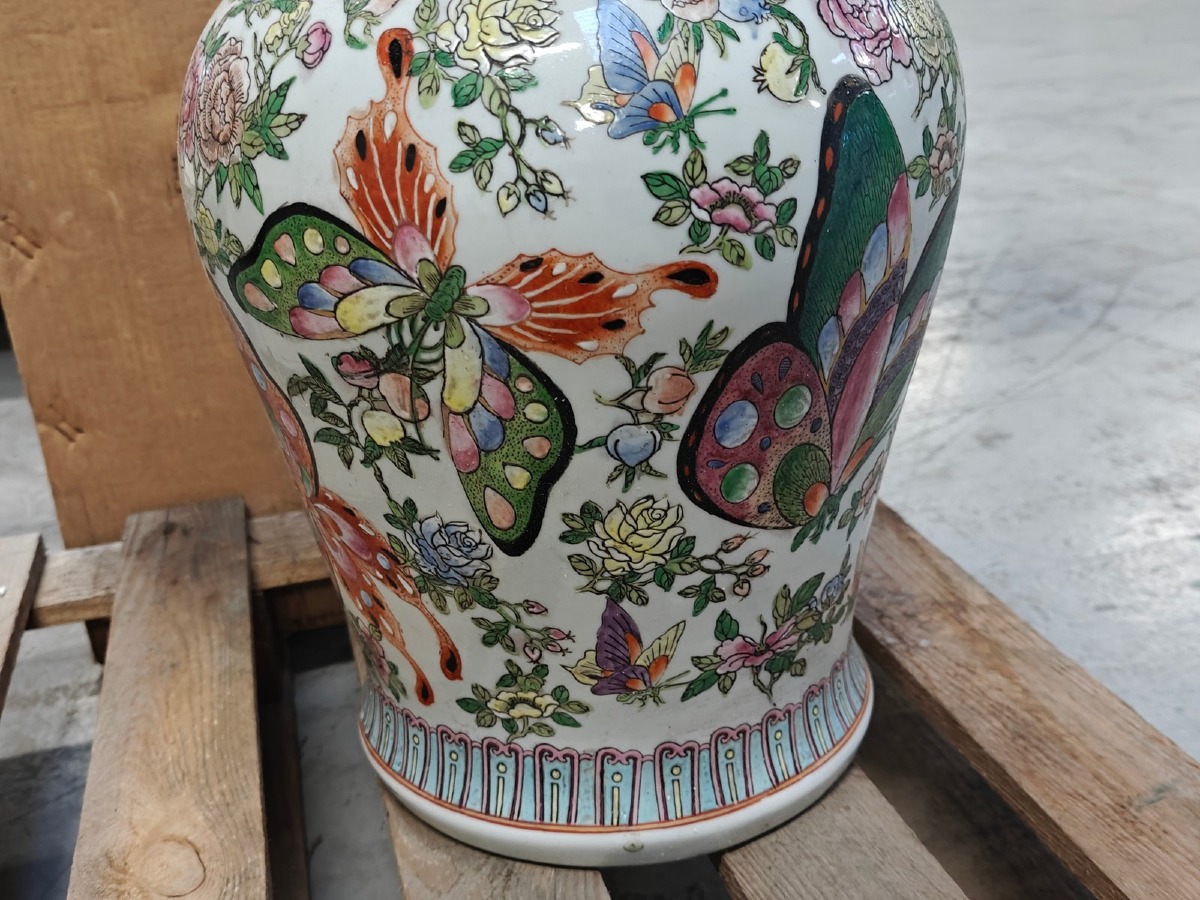 Kinesisk krukke m/låg. Håndmalet. H: ca 45 cm. Oplyst datering fra første halvdel af 1900-tallet.
