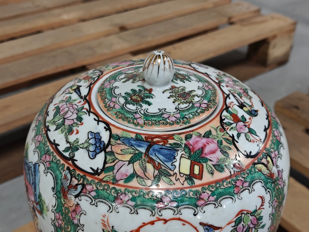 Kinesisk krukke m/låg. Håndmalet. H: 32 cm. Oplyst datering fra første halvdel af 1900-tallet.