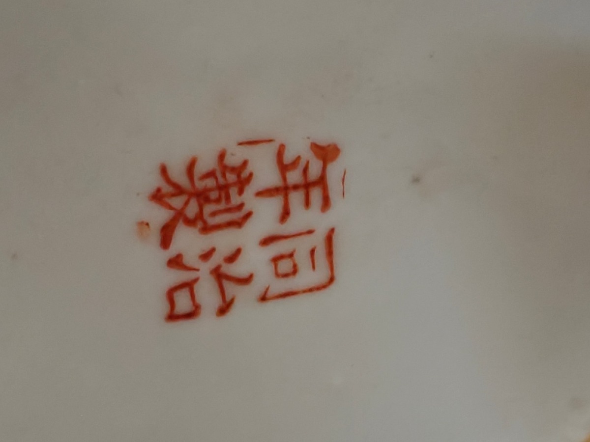 Kinesisk krukke m/låg incl opsats. Håndmalet.