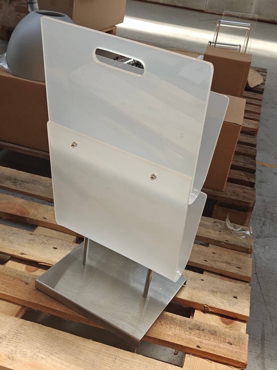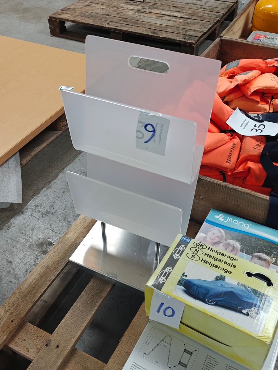Magasinholder. Akryl holdere og fod i stål. H: 65 cm. B: 30 cm. D: 25 cm. Udstillingsmodel. MOMSFRI.