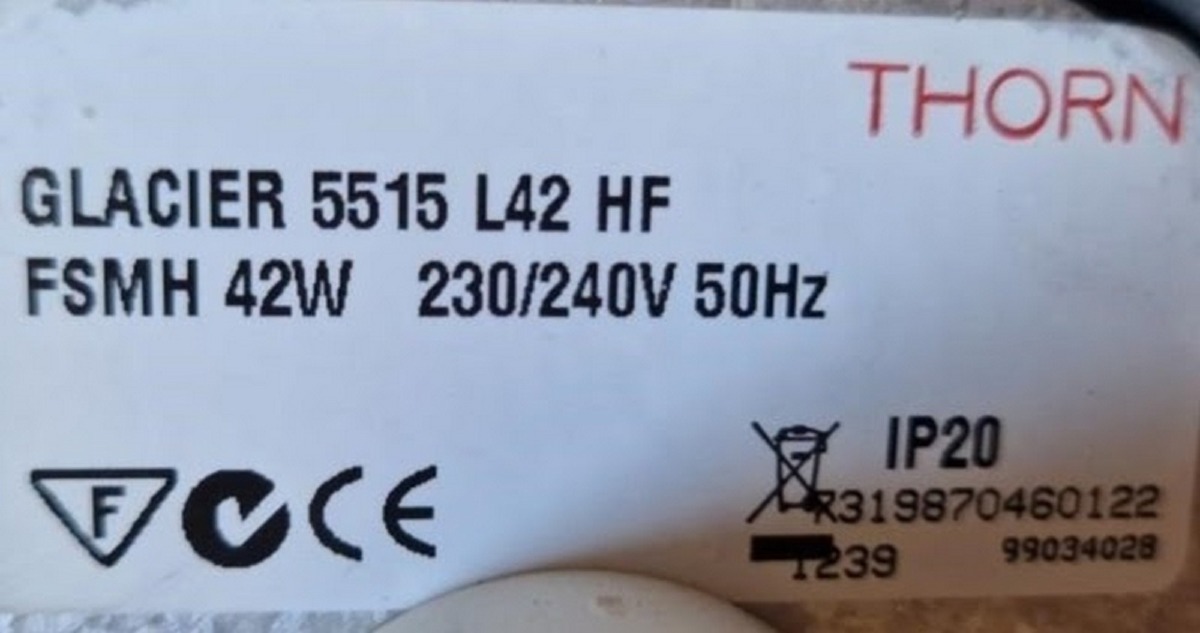 Pendel. Mrk Thorn. Model: Glacier II. Industrielt design. Mål: skærm: Ø 34 cm. Ubrugt, usamlet og i emballage. MOMSFRI