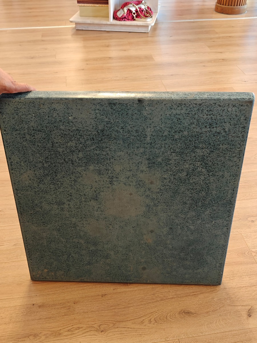 Fransk cafébordplade. SM France Stratifié Moulé. Mål: 68,5 x 68,5 cm. Brugt med brugsspor. UDEN ben