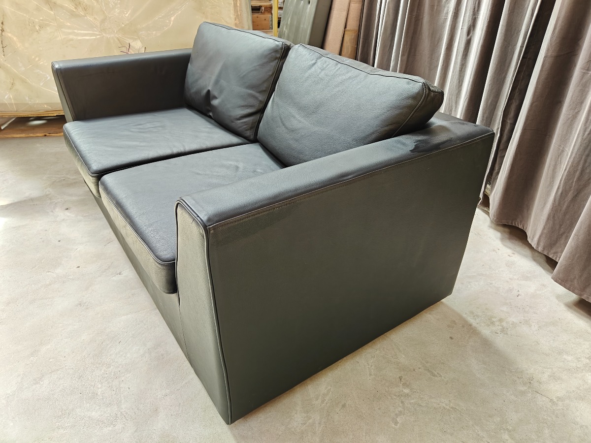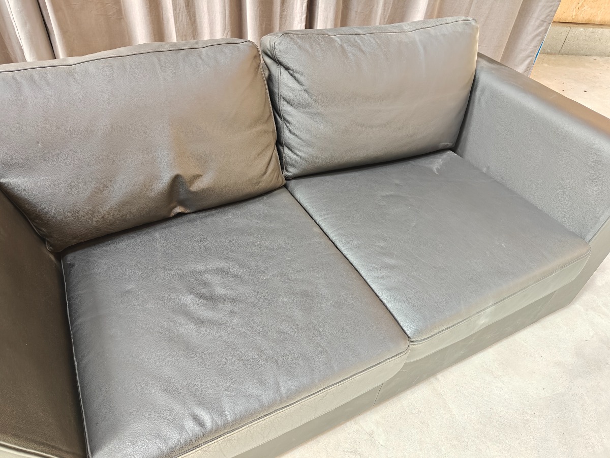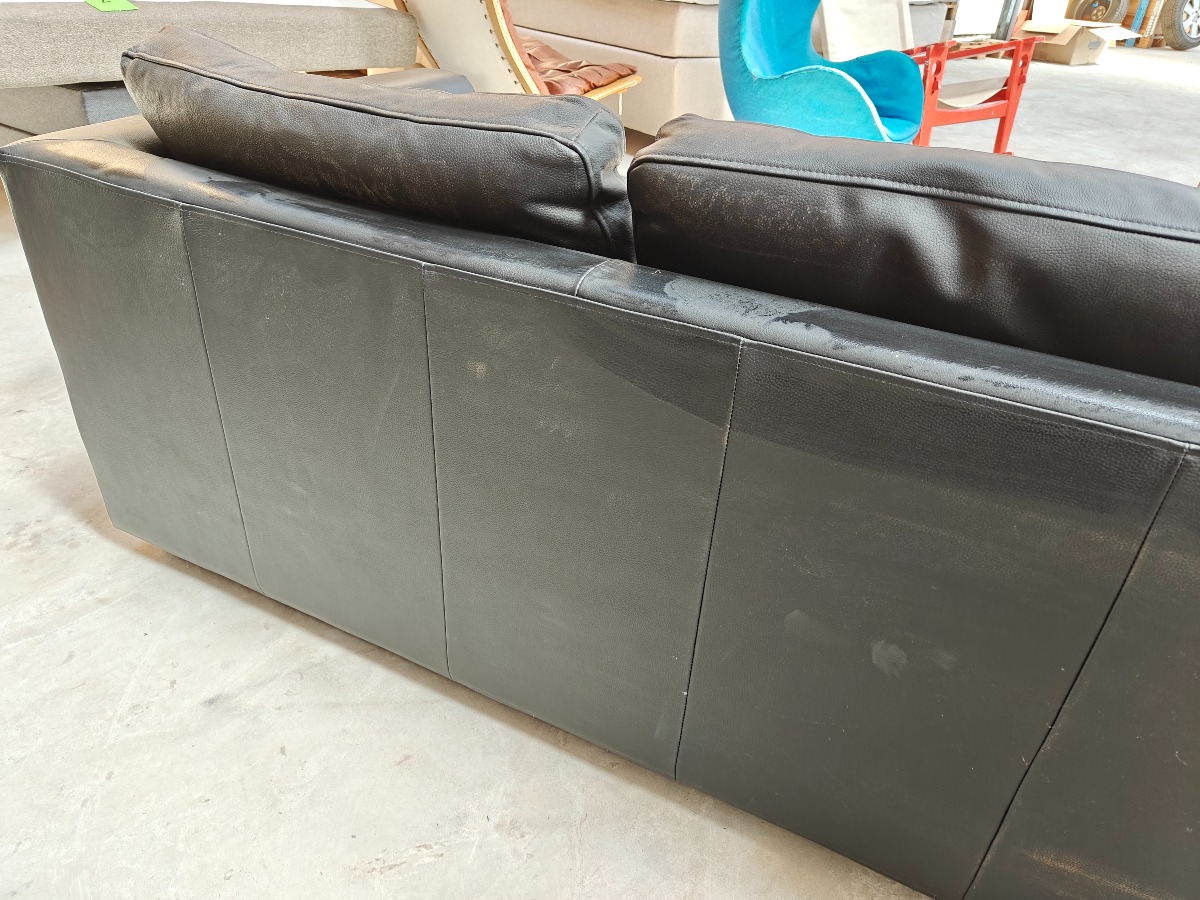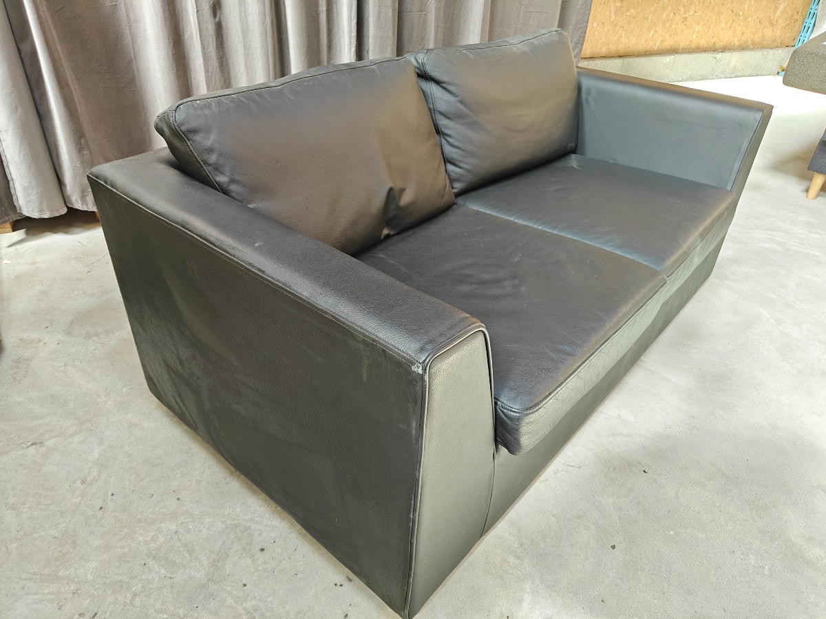 2 pers. sofa med sort læder. Minimale brugsspor. 75 x 160 x 90 cm.