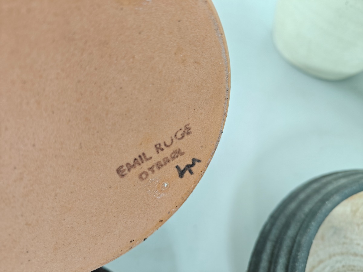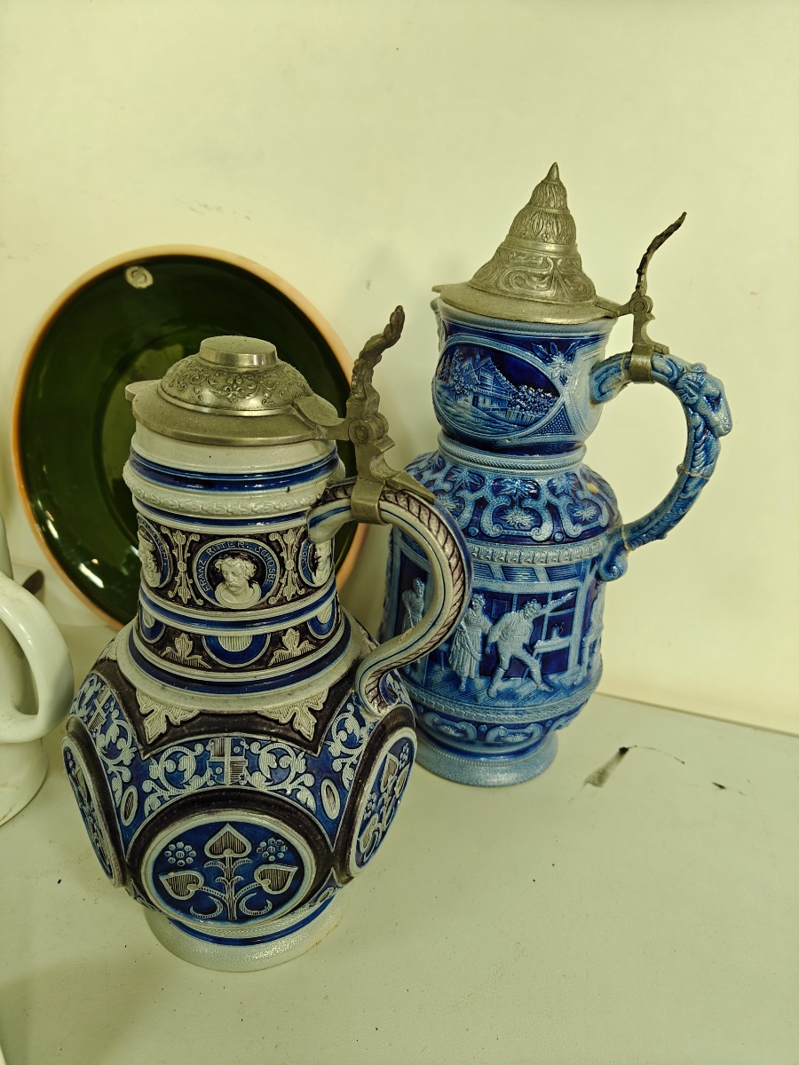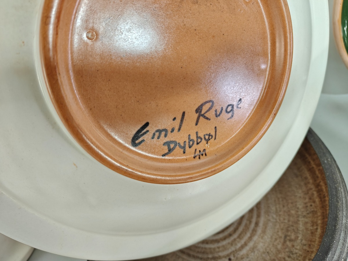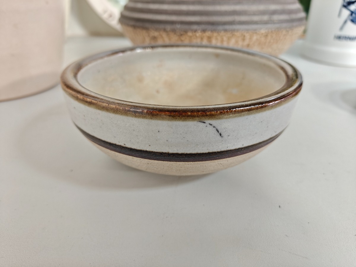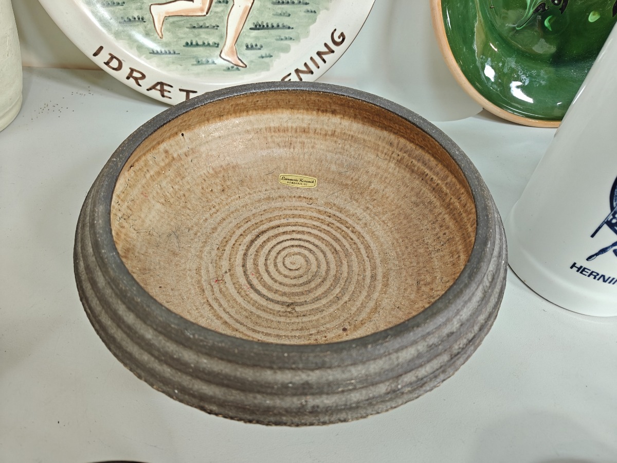Dele keramik, lertøj m.m. mange forskellige kunstnere. Greb på saltglaserede kande med rep.