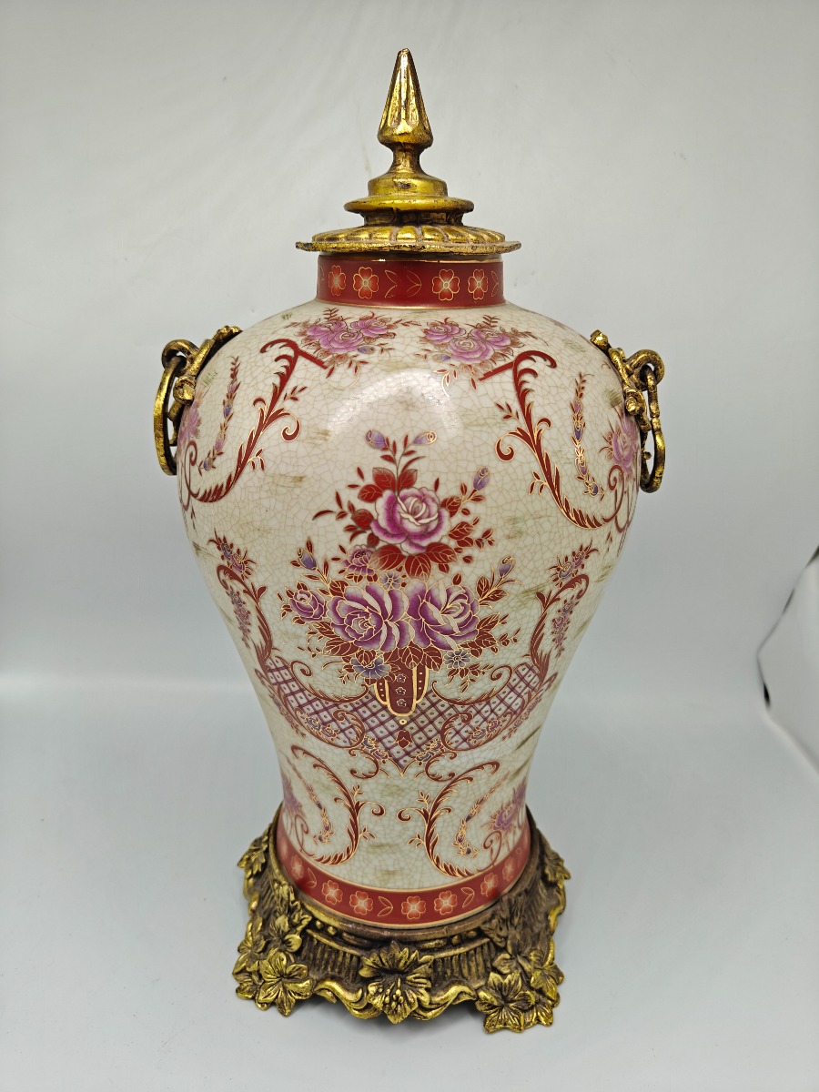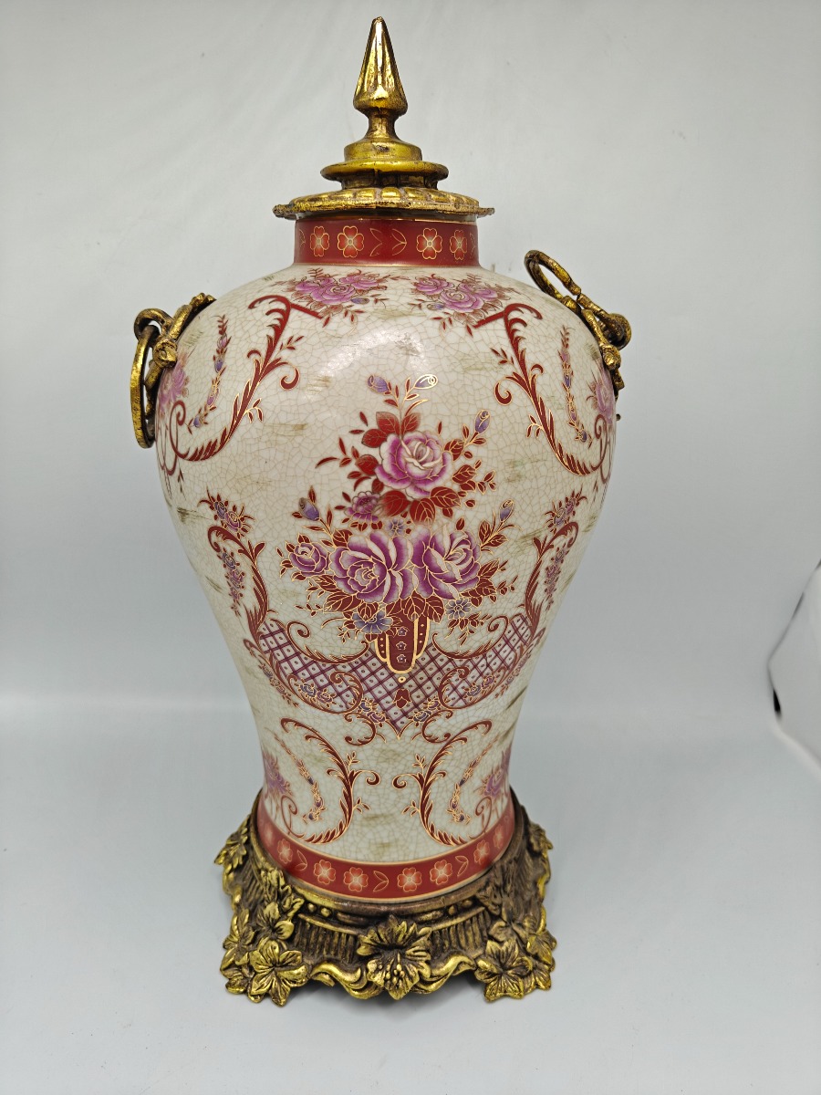 Japansk Satsuma vase med forgyldte detaljer af støbt materiale. H. 40 cm.