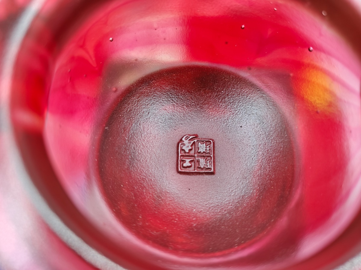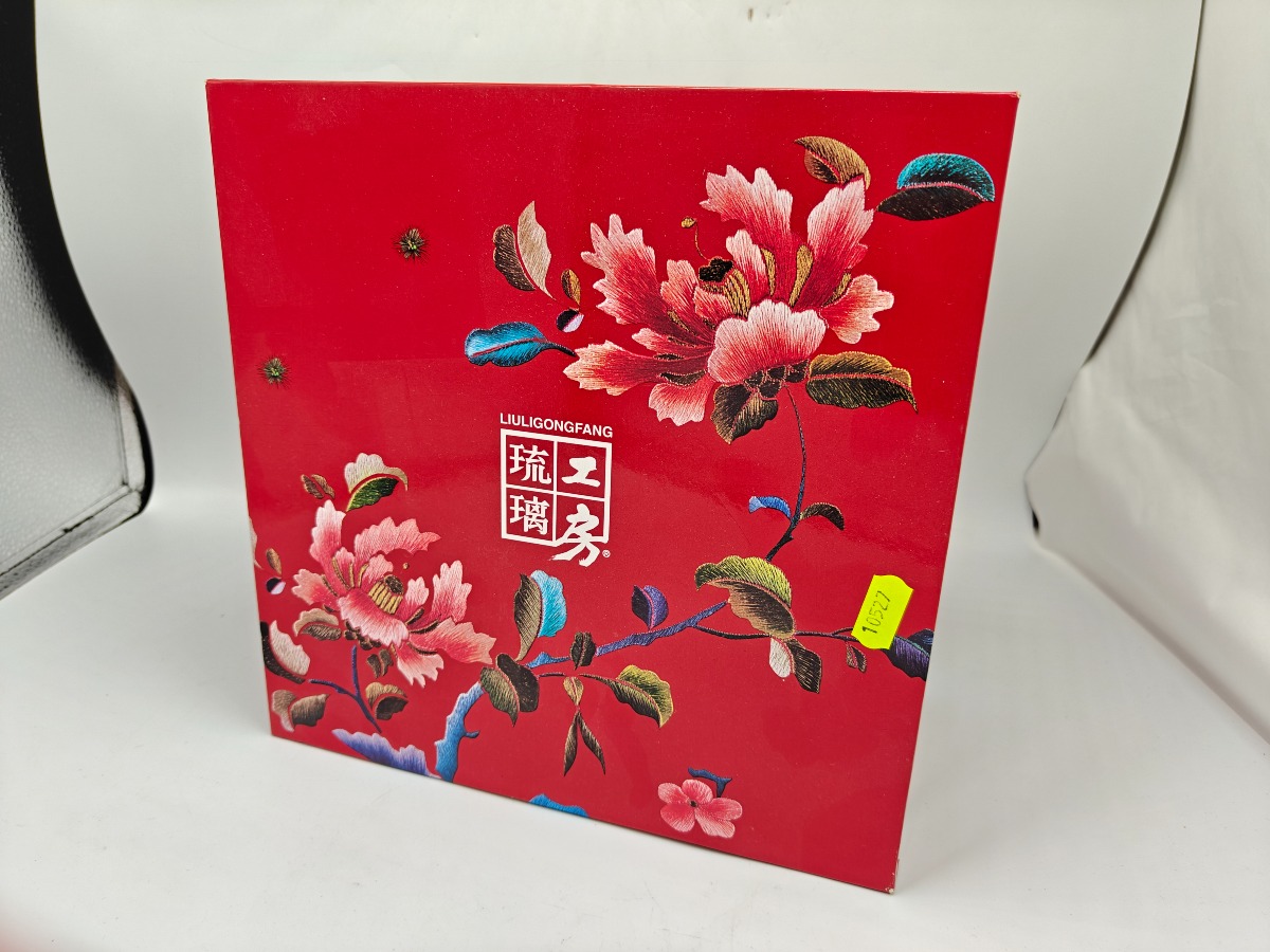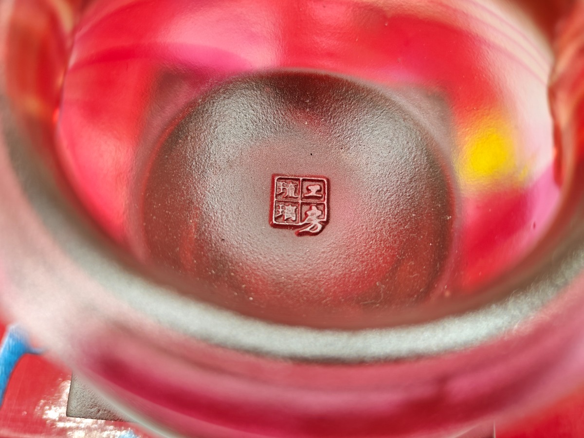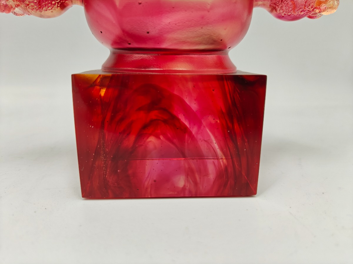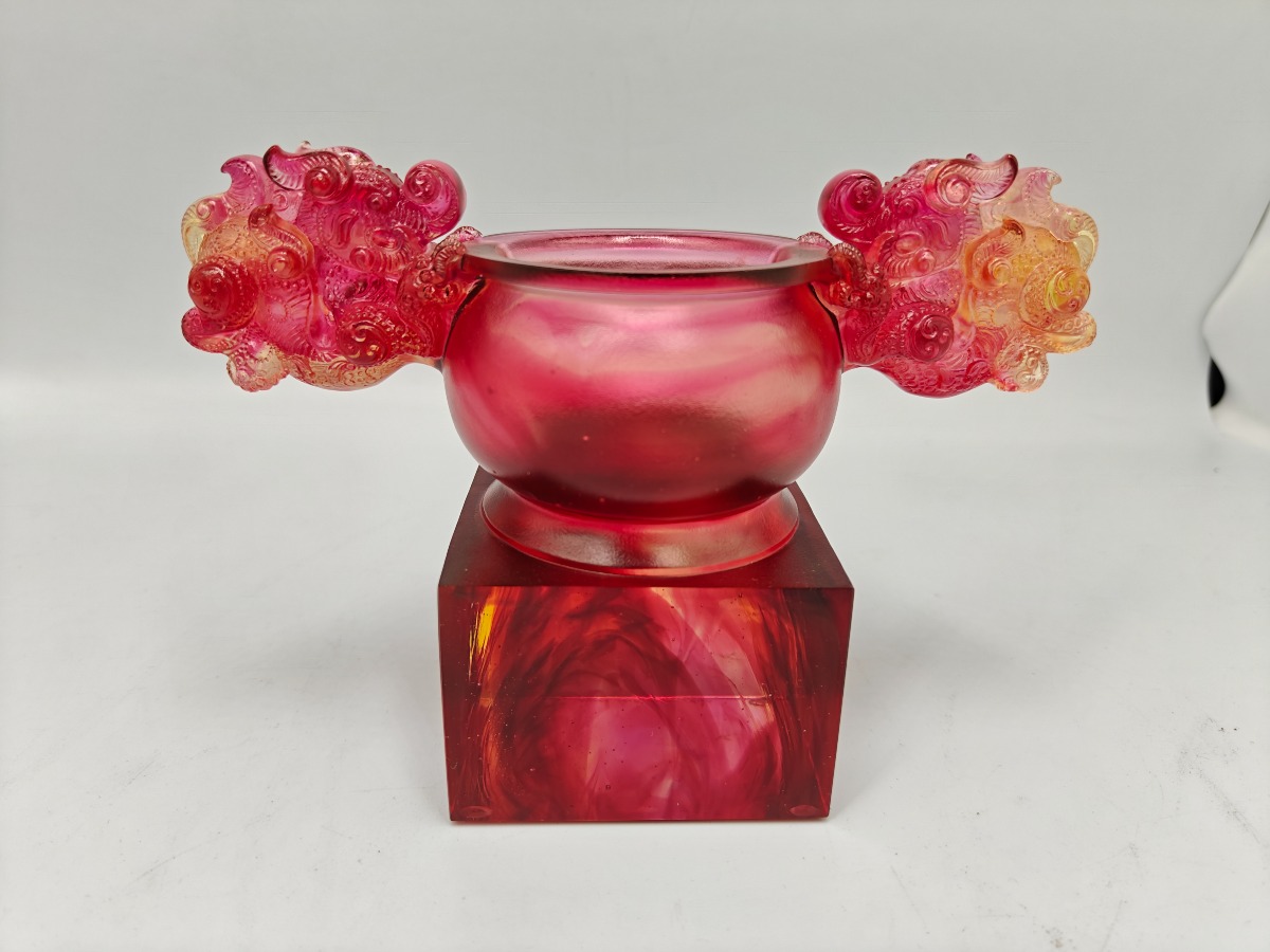 Liuligongfang krystalfigur i røde og gyldne toner. Original kasse og ertifikat medfølger. 12,5 x 17,5 cm.