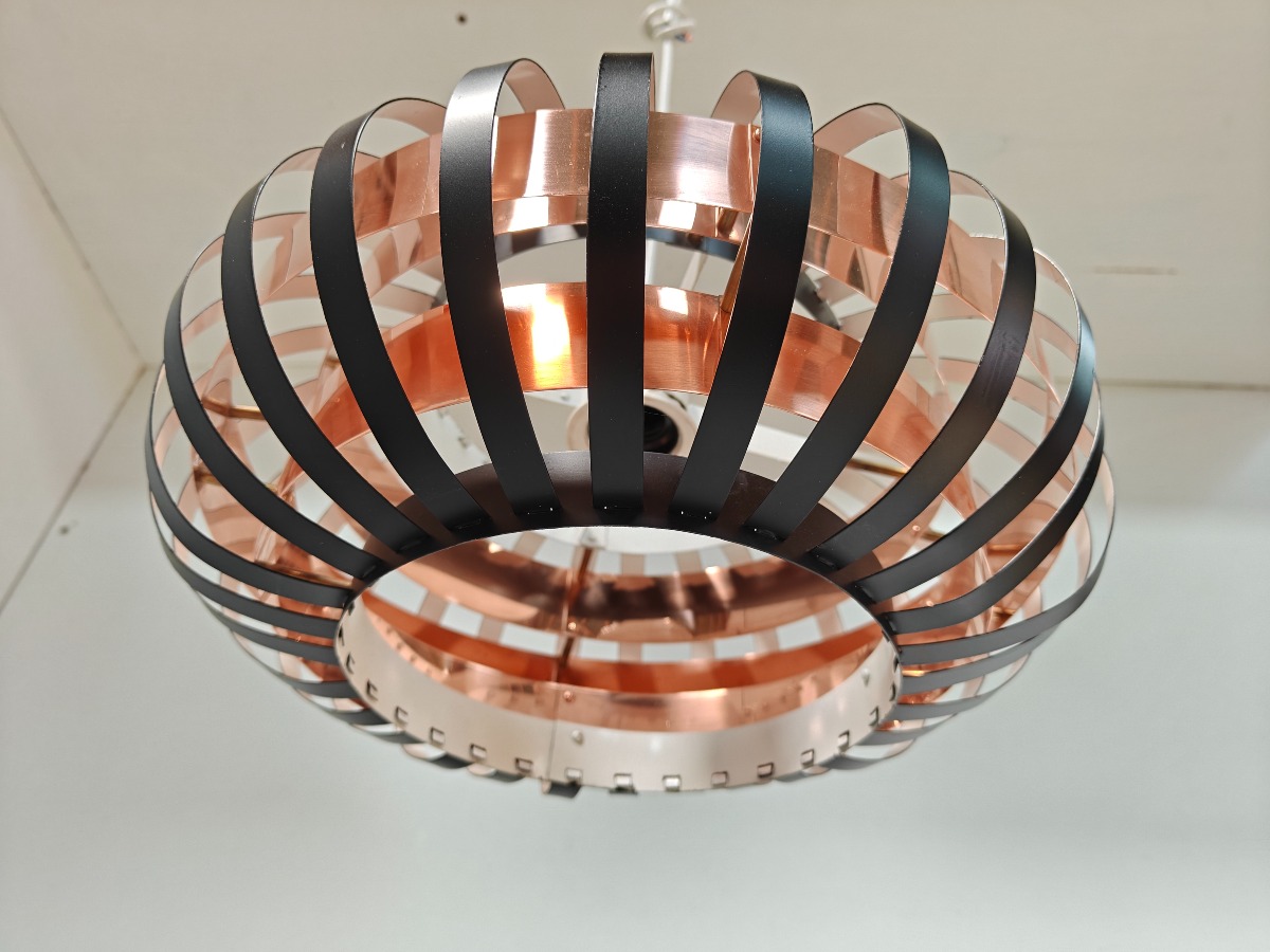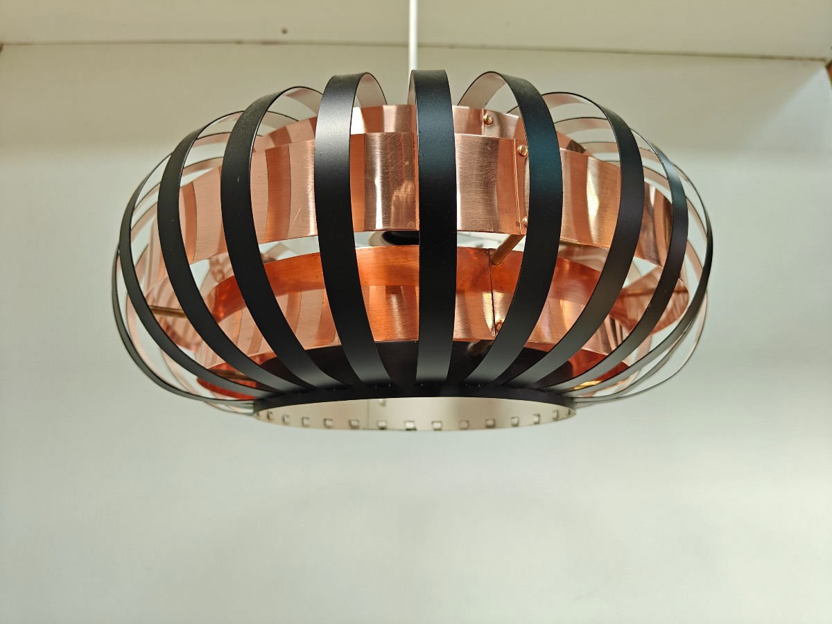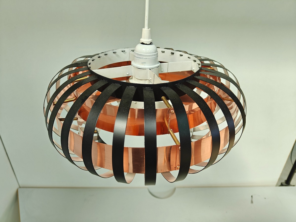 Pendel af kobber og sortlakeret metal. Ø. ca. 30 cm.