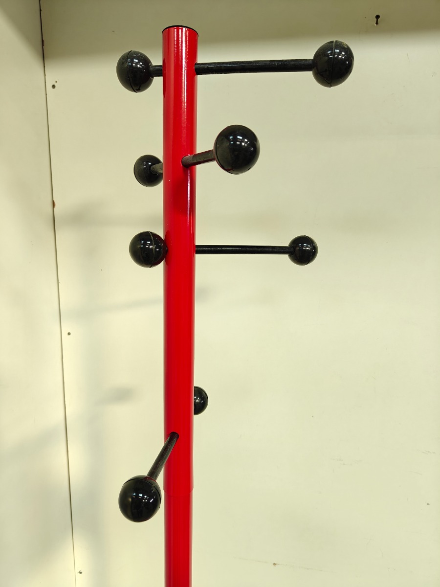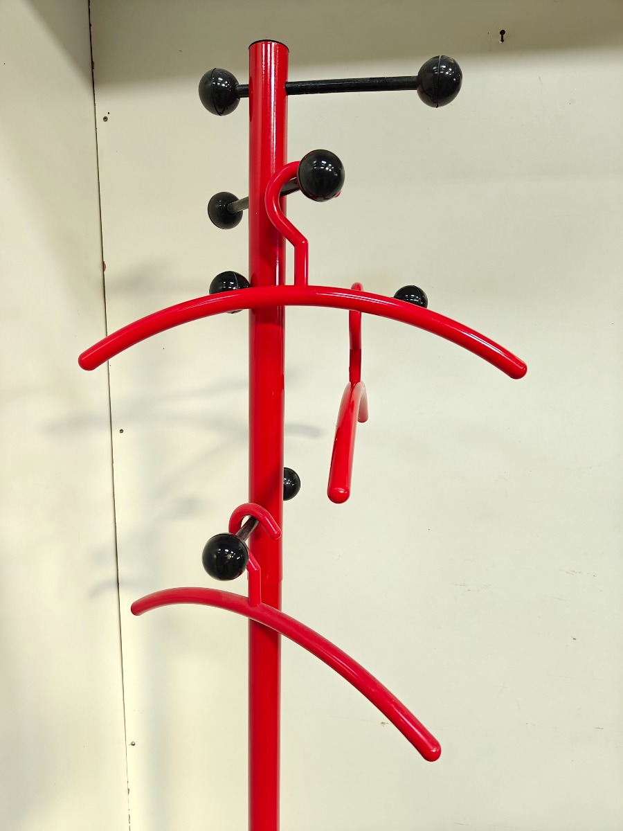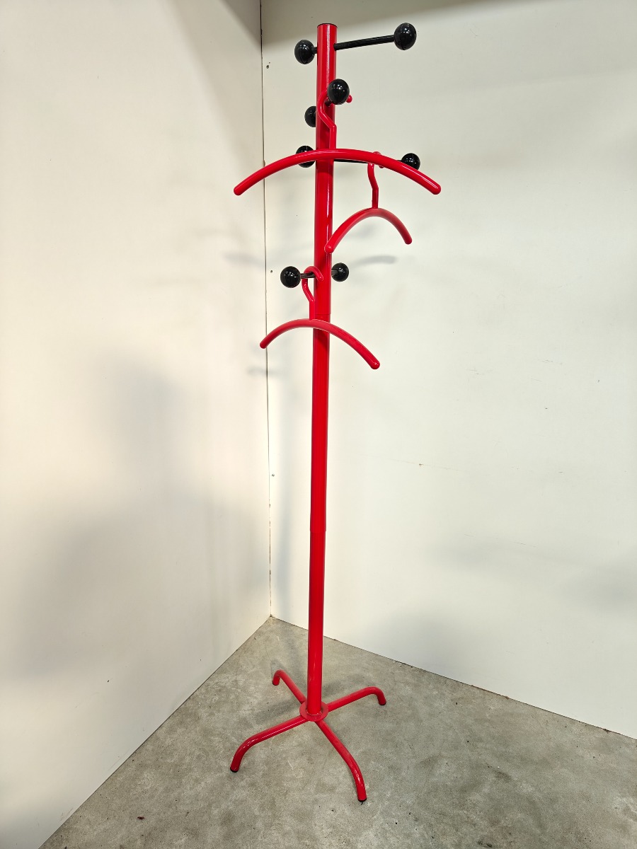 Stumtjener af rødlakeret metal. Skydbare bøjlestænger.