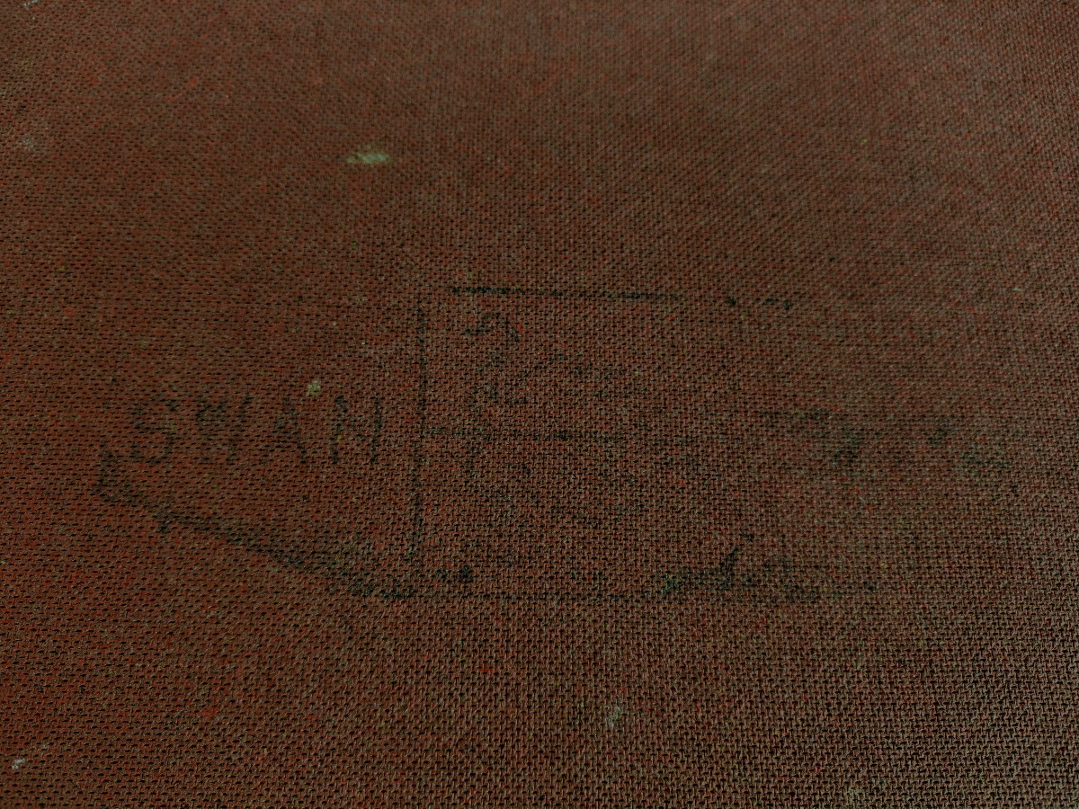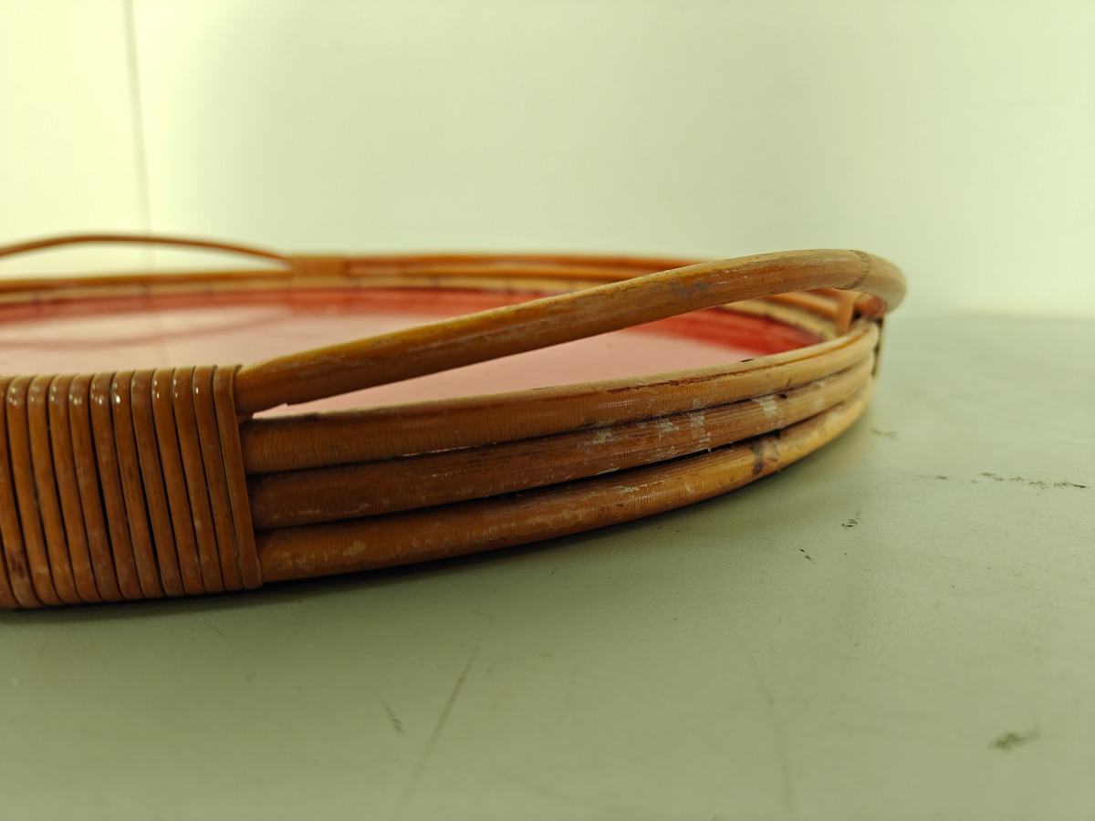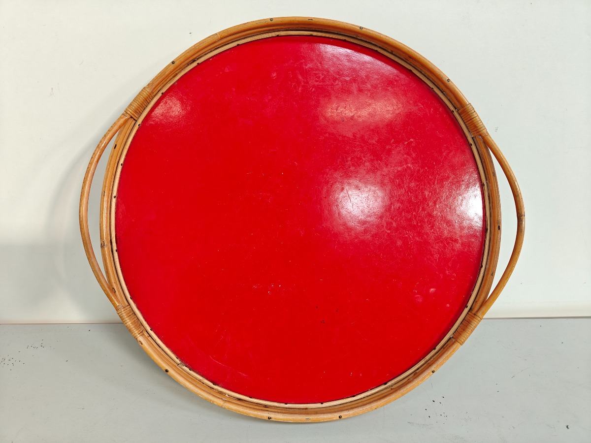 Swan bakke med rød plade og kant af bambus. Ø. 43 cm.