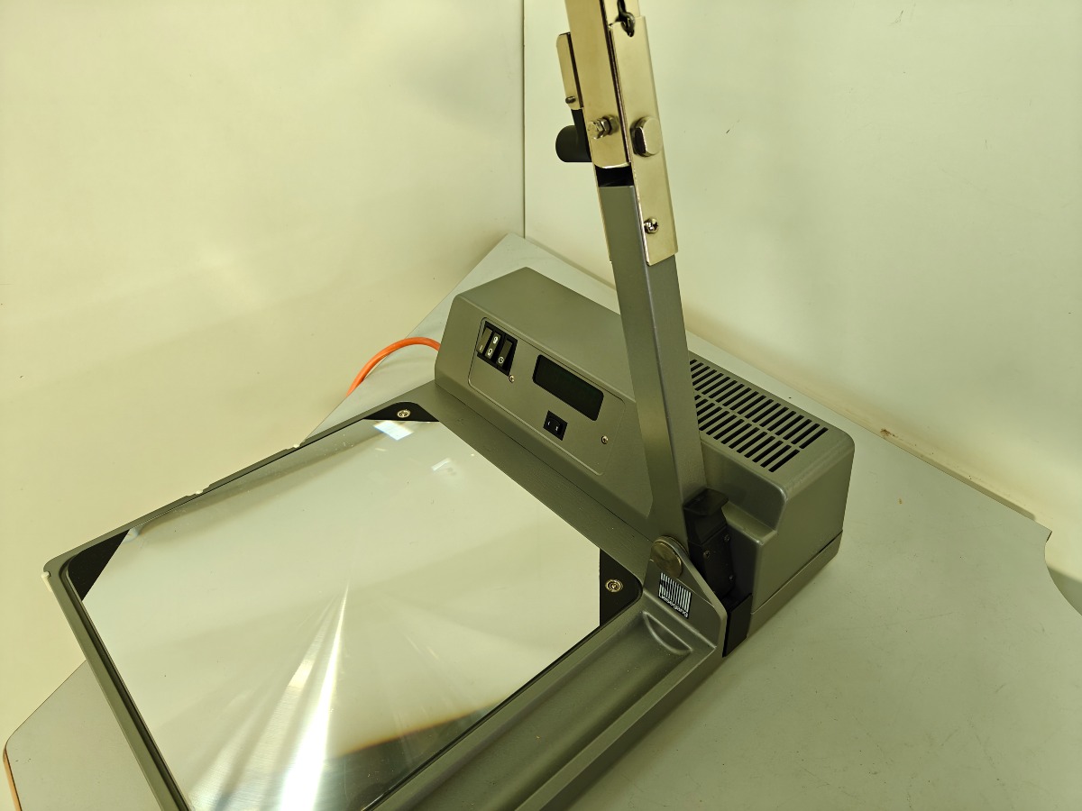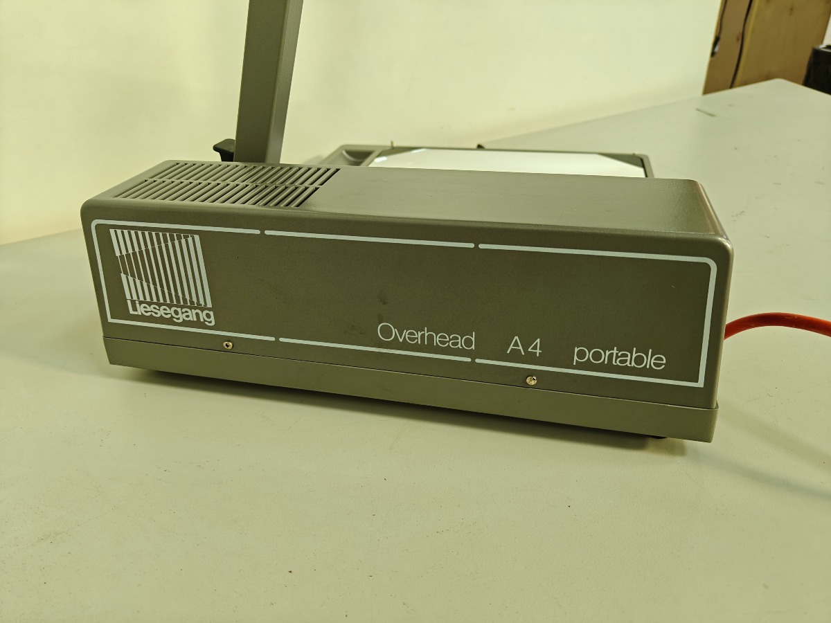 Transportabel overhead projektor af mærket Liesegang. Fungerer. Lærred medfølger.