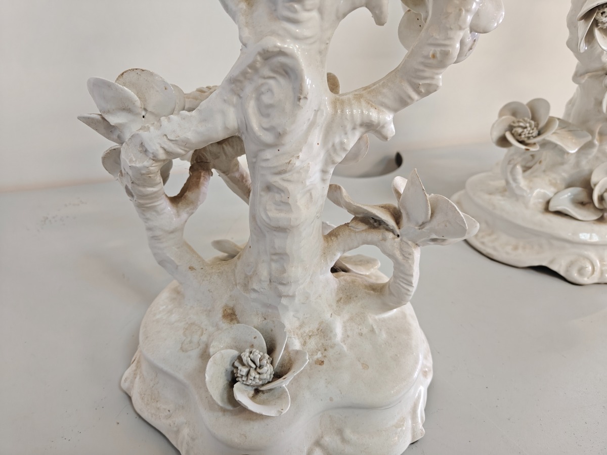 2 bordlamper i form af gren med fugle og blomster