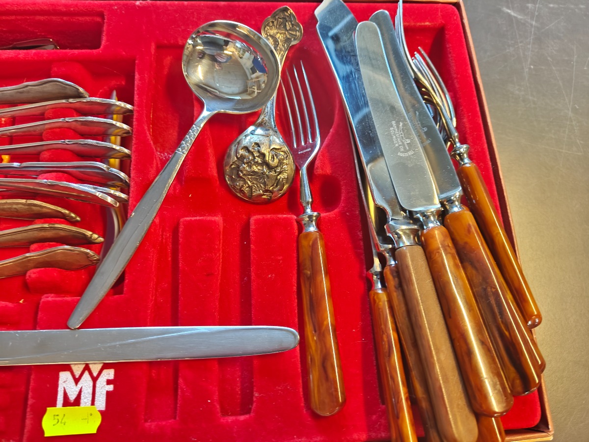 Dele forskelligt bestik. Mange forskellige. Stål og sølvplet.
