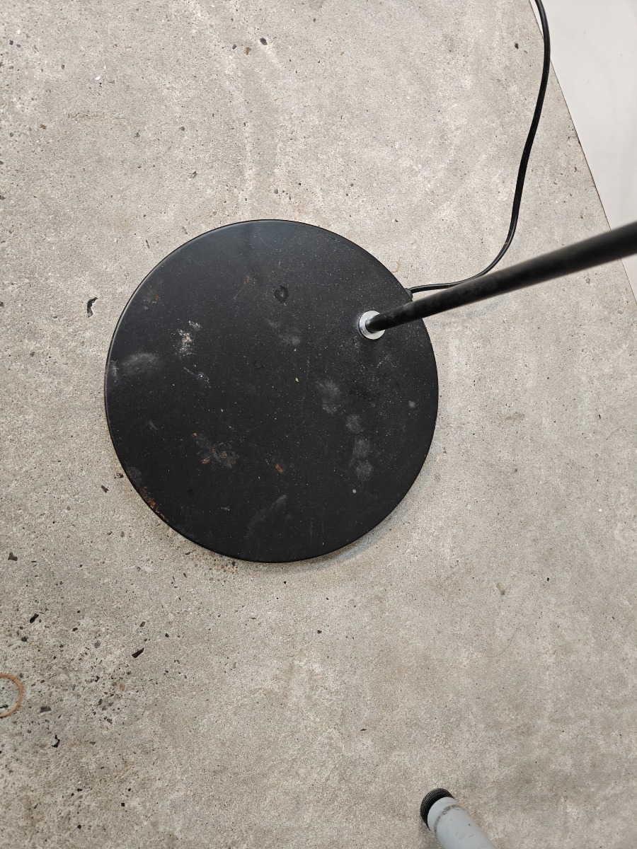 Gulvlampe, matsort med kromdetaljer. Brugsspor.