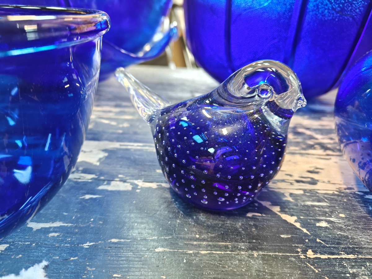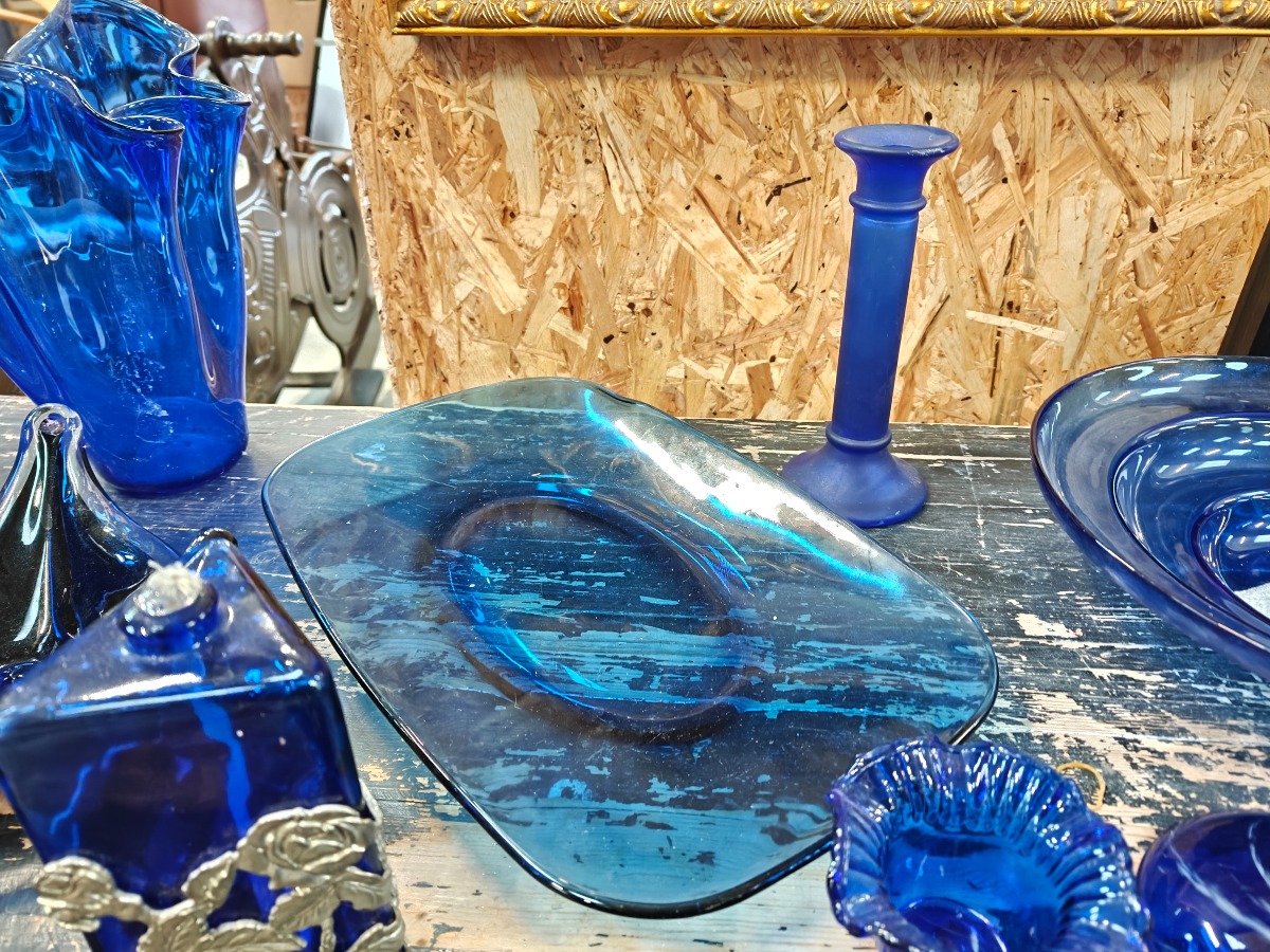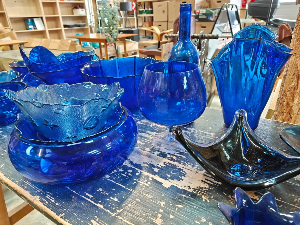 Samling af blåt glas
