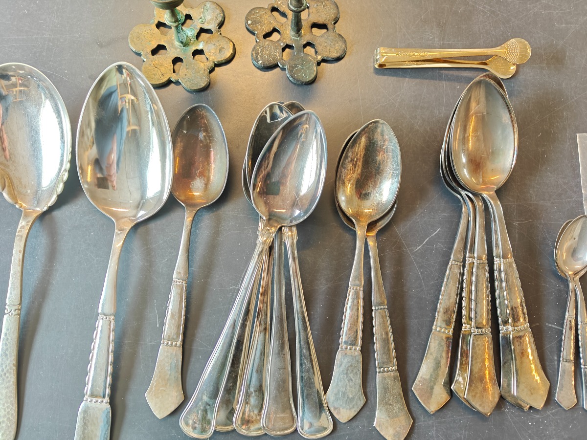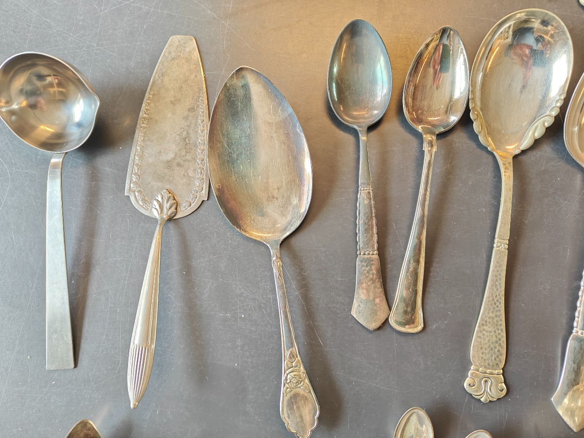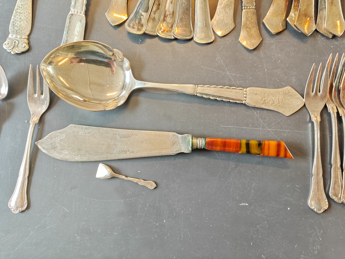 Samling forskellige bestikdele af sølvplet