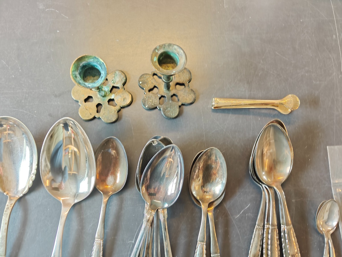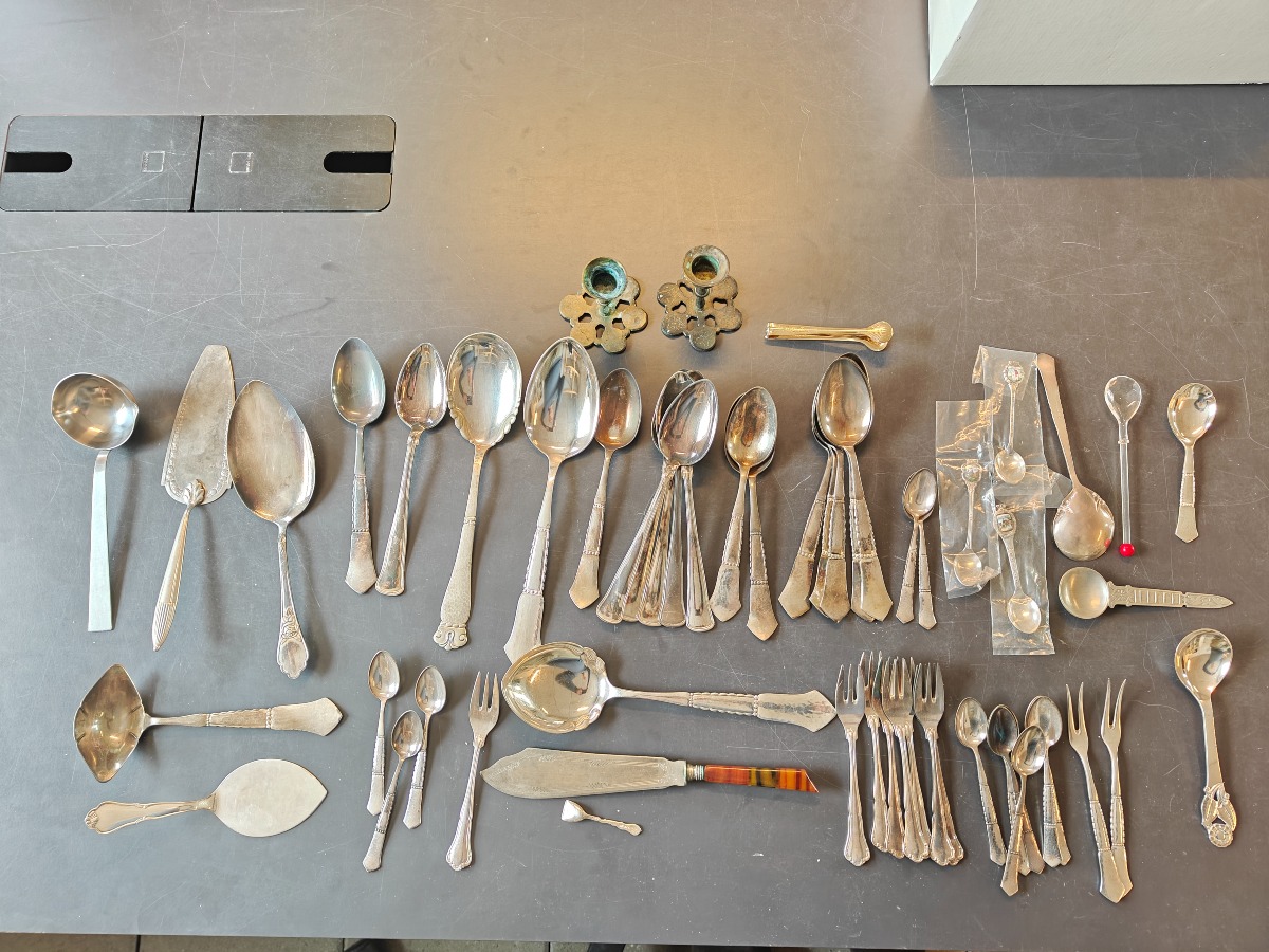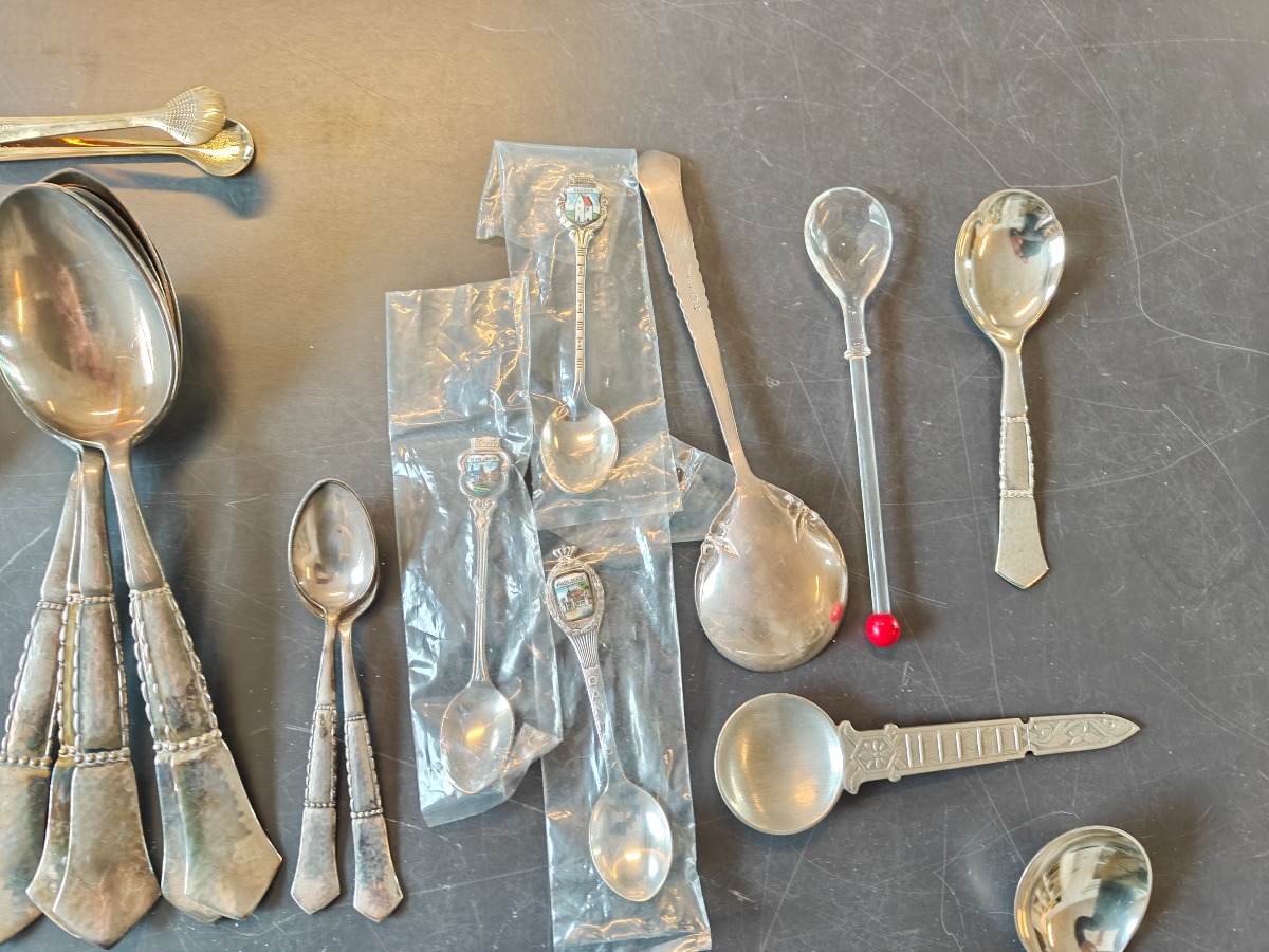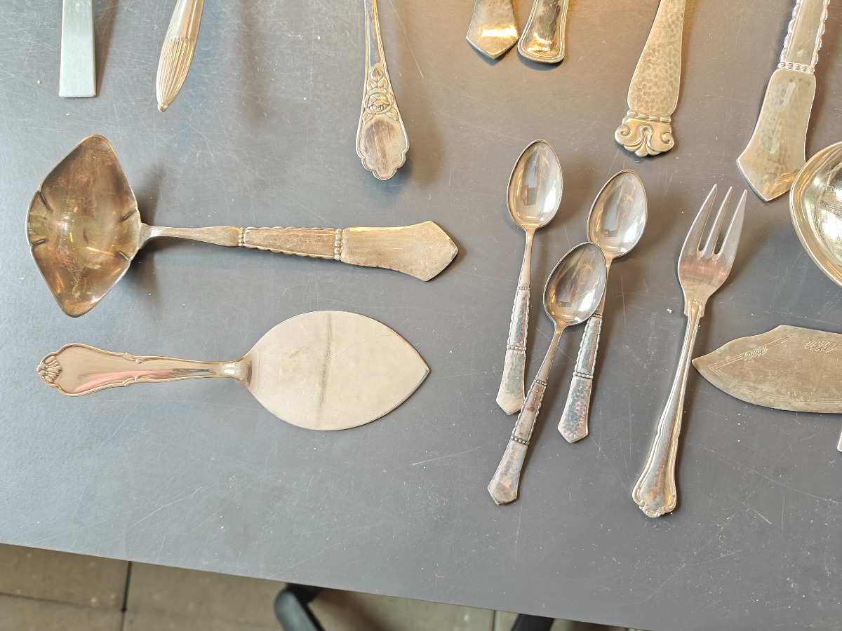 Samling forskellige bestikdele af sølvplet