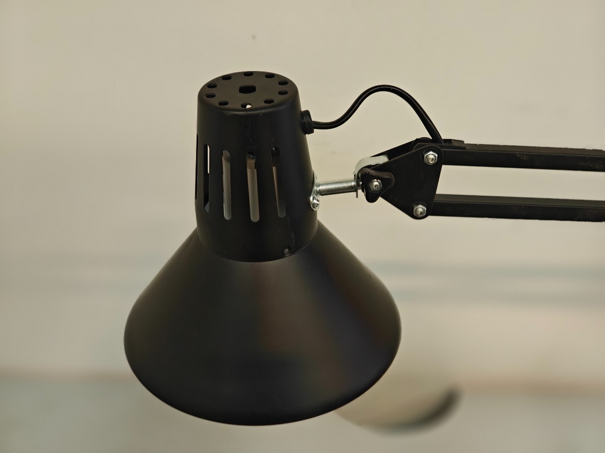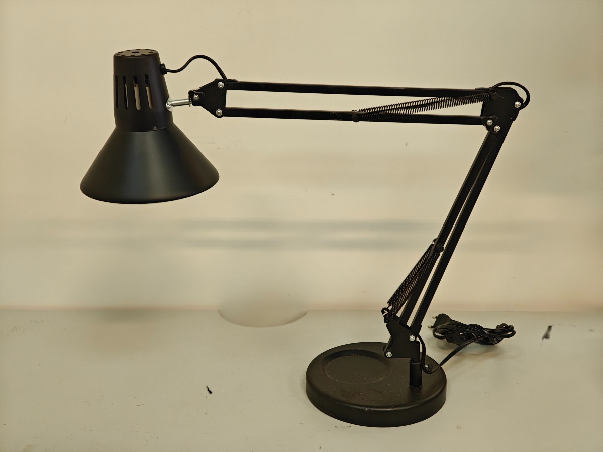 Skrivebordslampe af matsort metal. Mindre brugsspor.