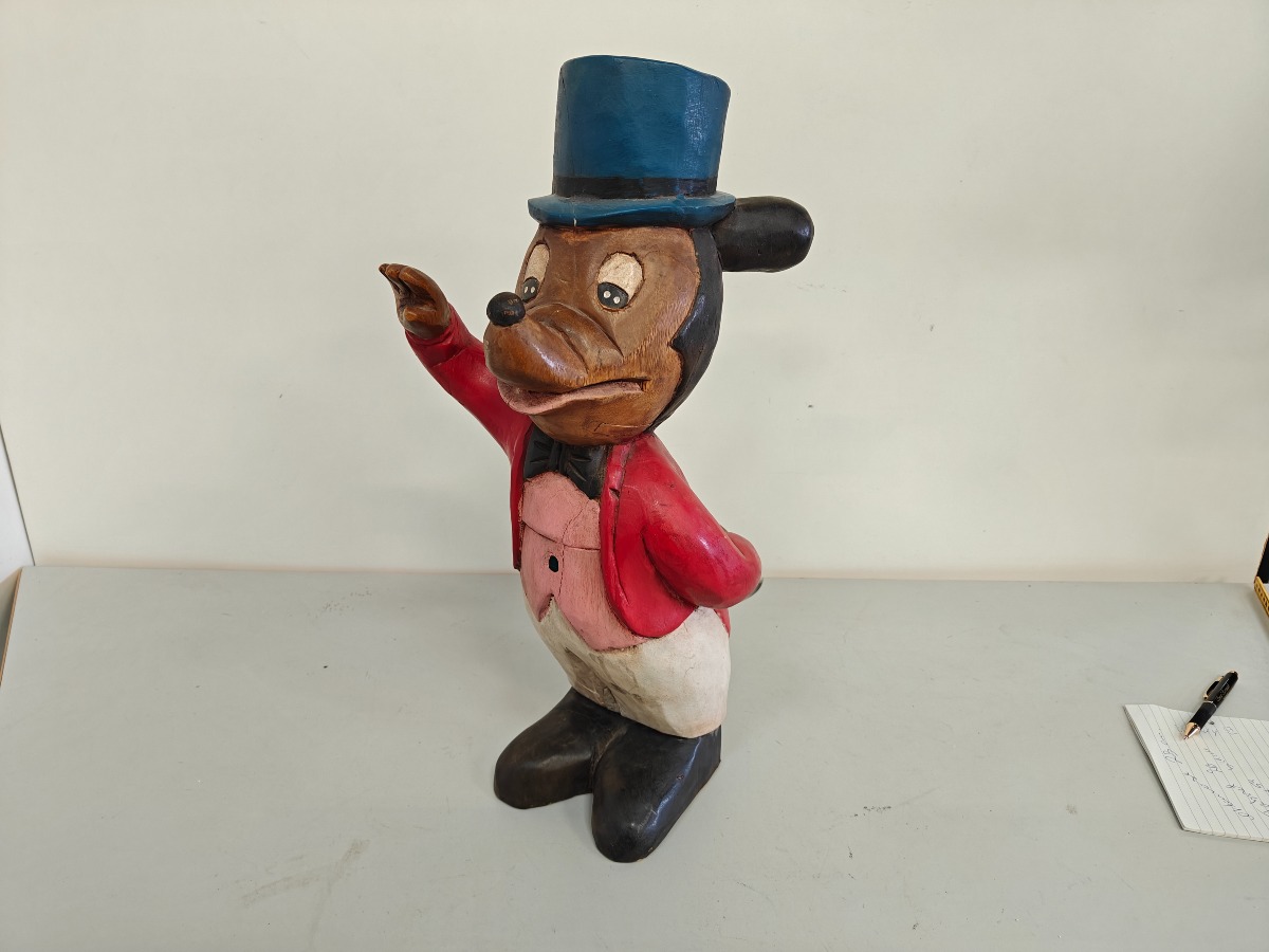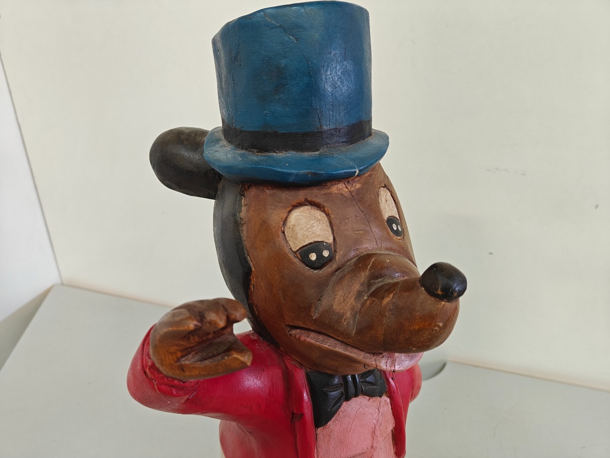 Træfigur "Mickey Mouse" af delvis bemalet træ. H. 52 cm.