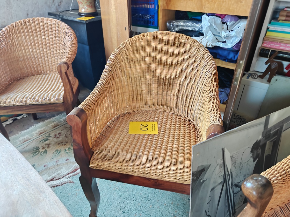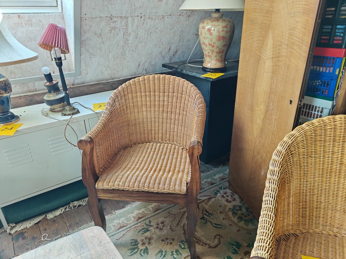 3 kurvestole med peddigrørflet på mørkbejdset stel.