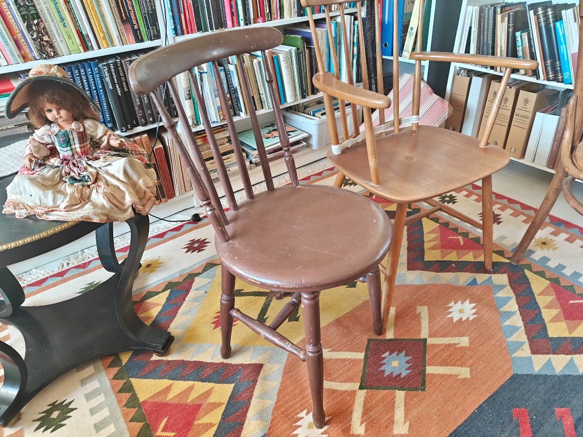 4 stole. Forskelligt design. Aldersrelaterede brugsspor.
