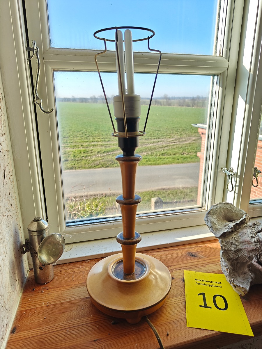 Bordlampe af birk. Delvist mørkbejdset. H. ca. 30 cm.