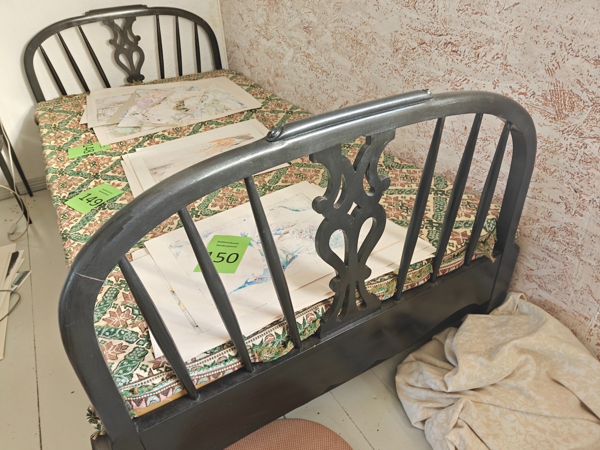 Enkeltseng/Daybed af sortmalet træ. 195 x 100 cm.