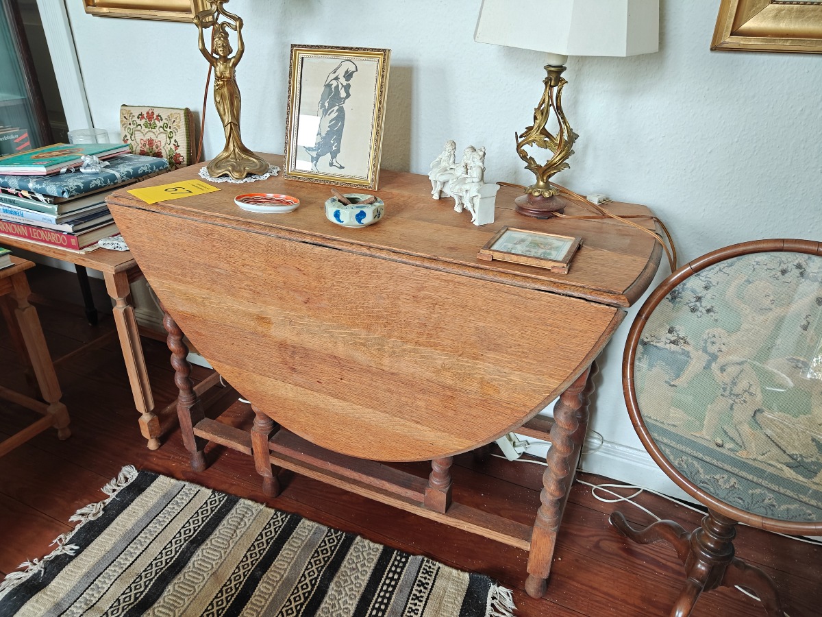 Gateleg bord med oval top. Egetræ. Udslået 100 x 160 cm.