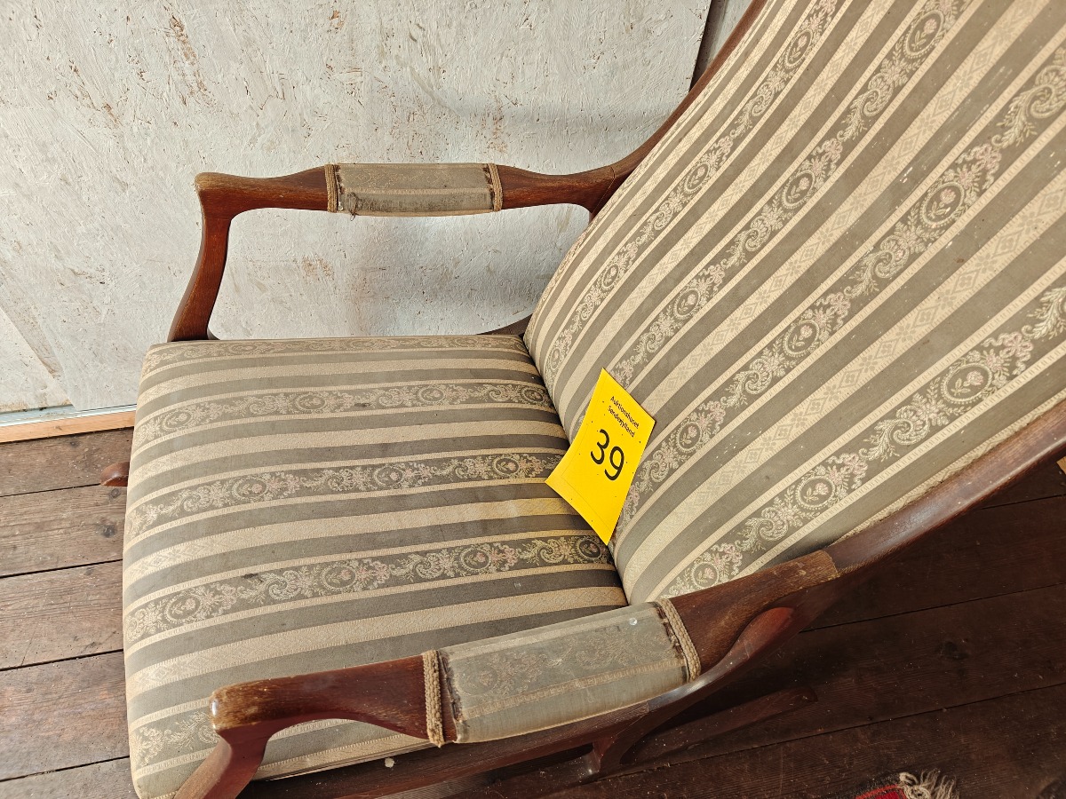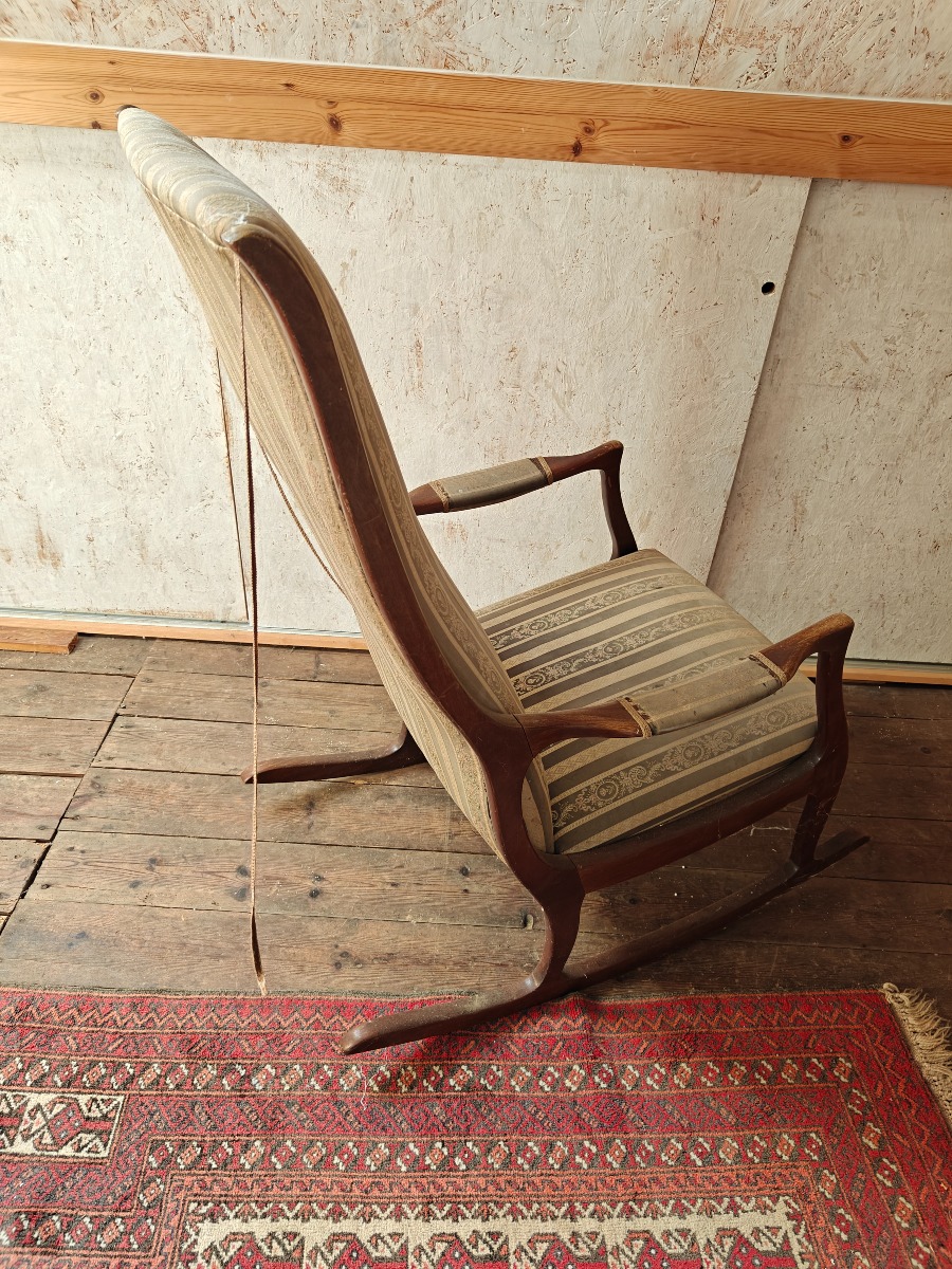 Jugendstil gyngestol med polstret sæde og ryg.