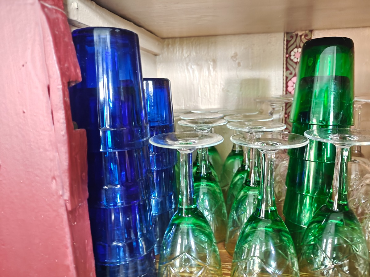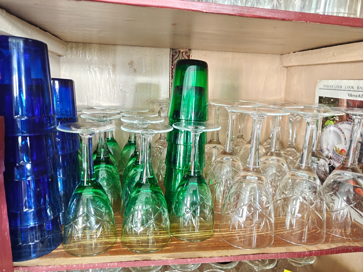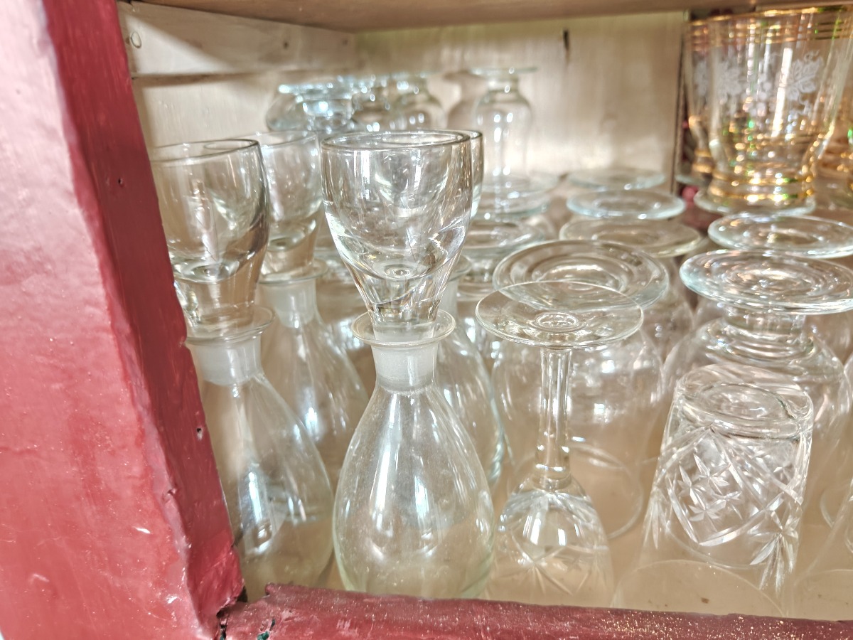 Samling af glas. Alle glas i skabet.