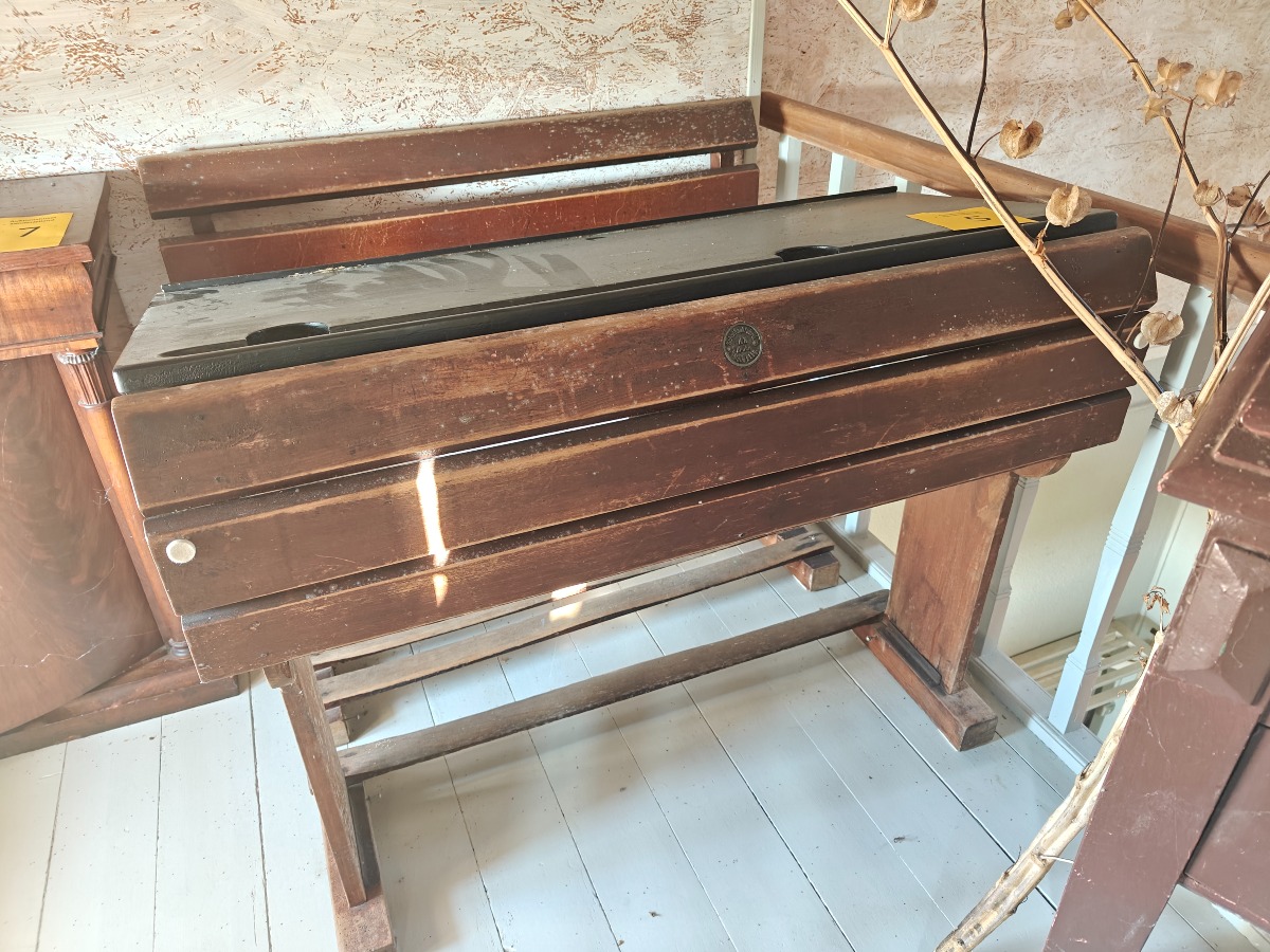 Skolebænk. Tysk fabrikat. H.F. Bruhn i Mölln. 85 x 110 x 95 cm.