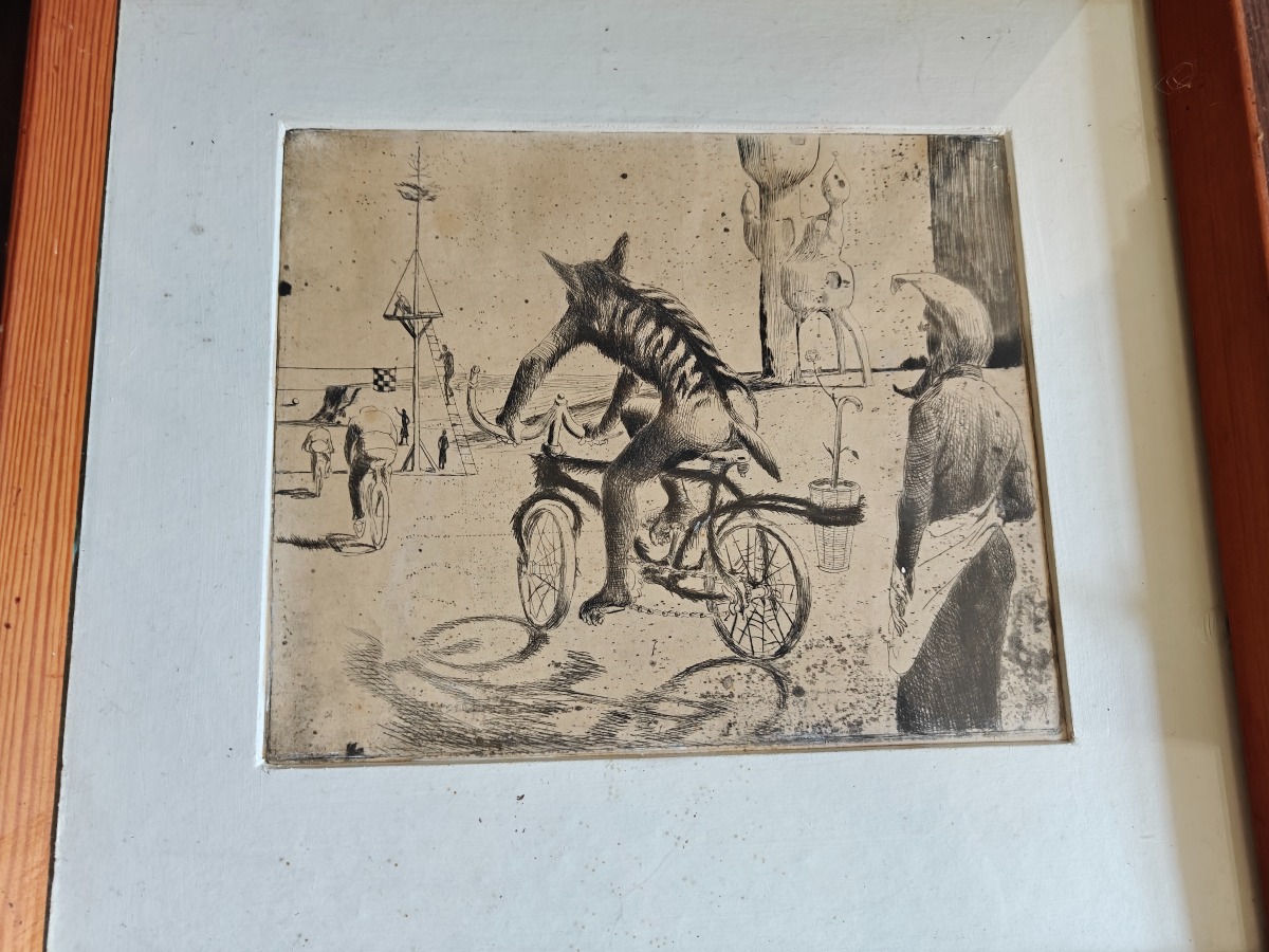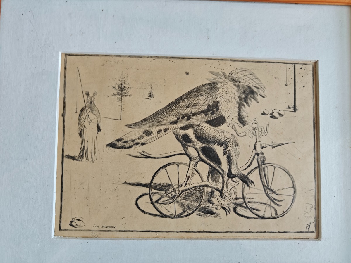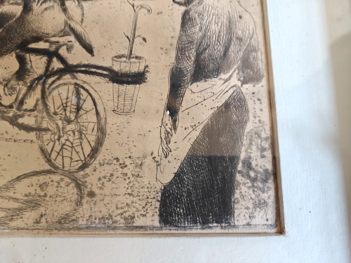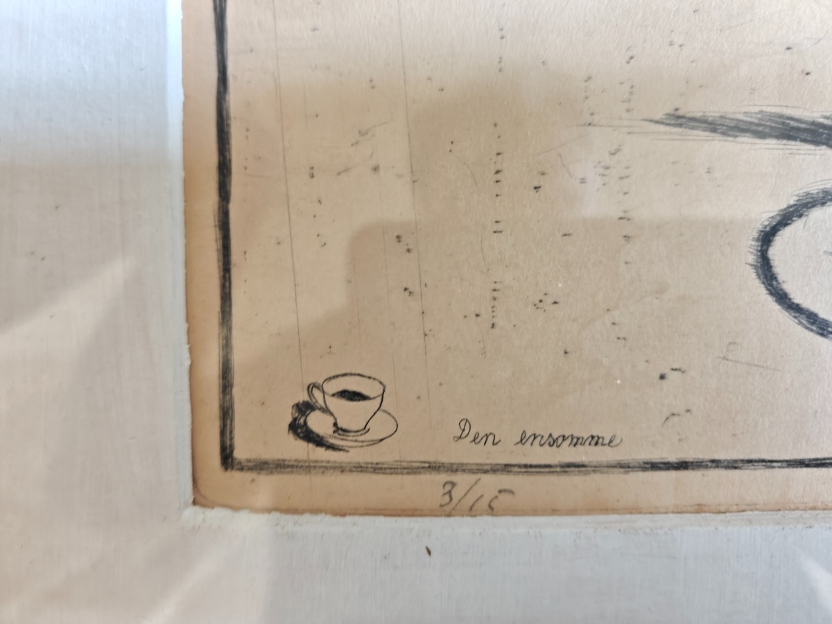 Thomas Arnel. Koldnål på papir. Indrammet med passe partout. Med ramme ca. 30 x 40 cm.